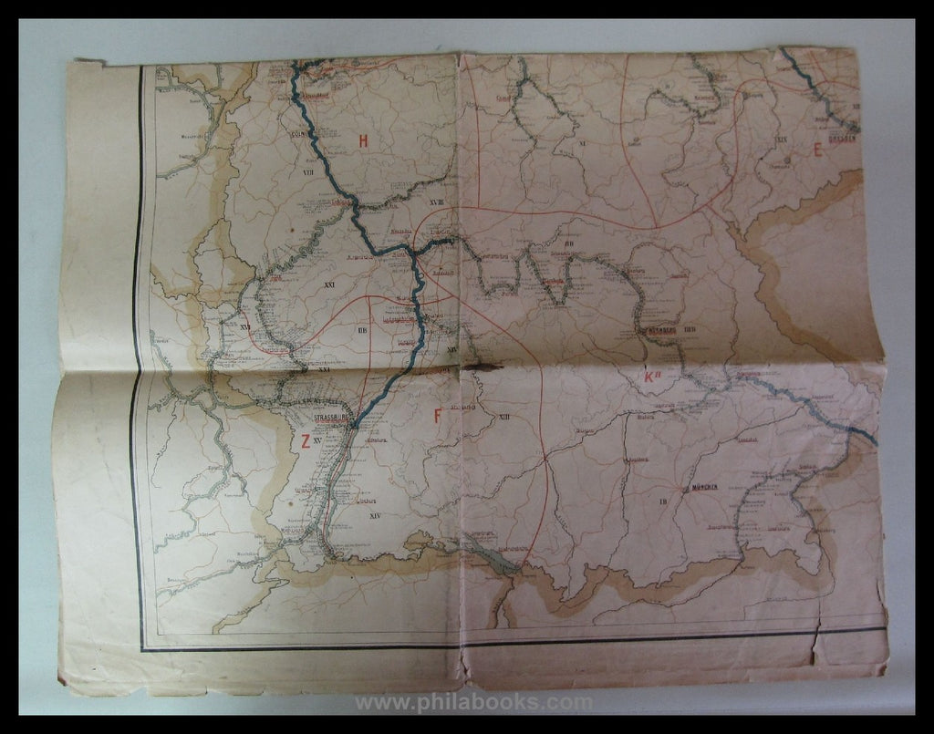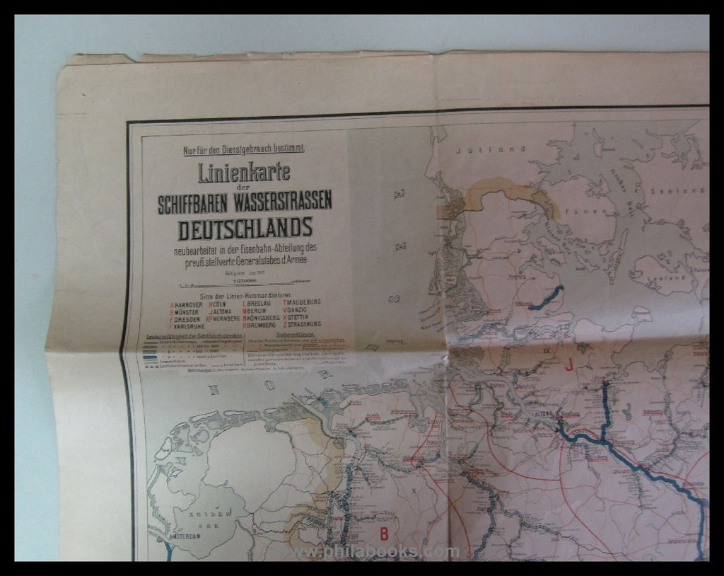 Line map of the navigable waterways of Germany, newly processed in the railway department of the Prussian Deputy General Staff of the Army, valid from January 1917, approx. 105cmx85cm, paper slightly browned, some tears #69305