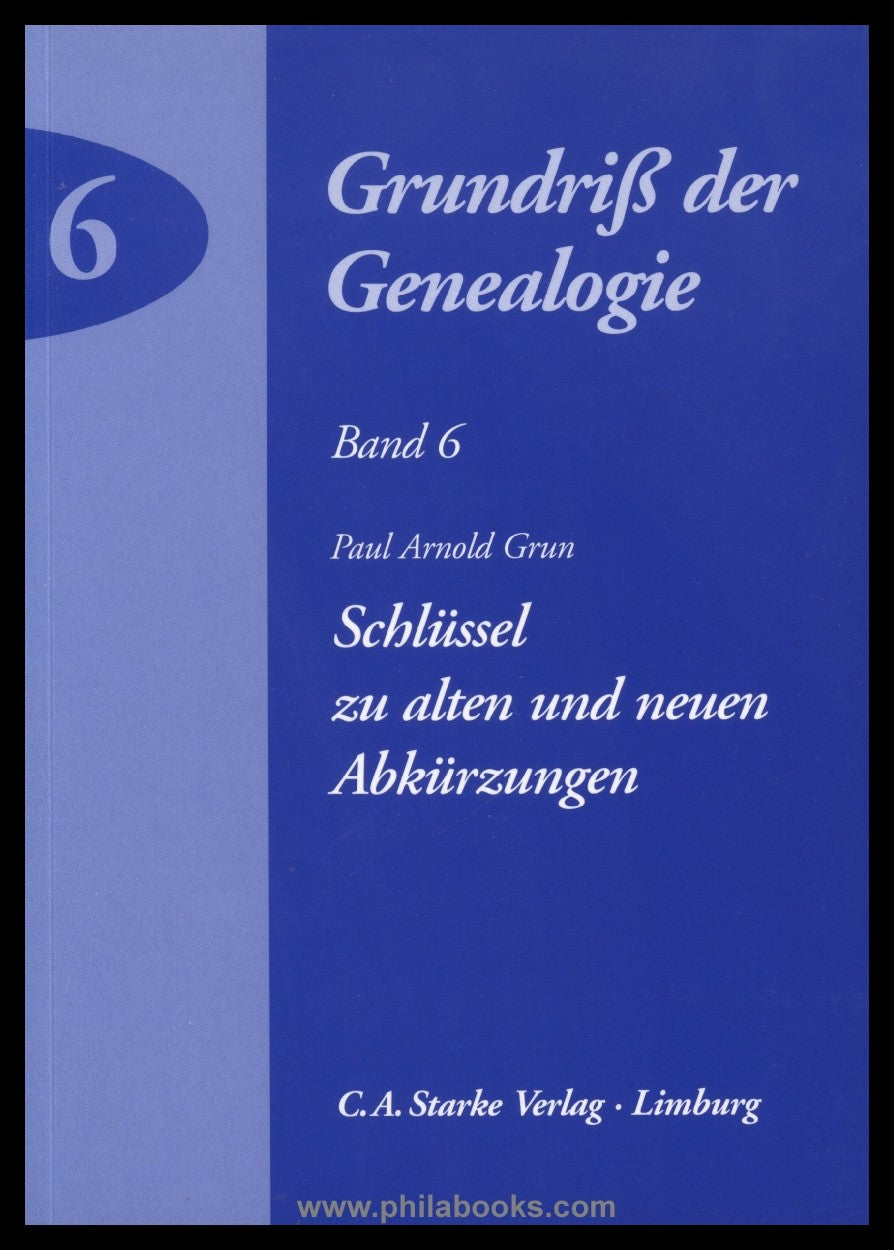 Grun, PA, Outline of Genealogy, Volume 6, Key to old and new abbreviations, 2002, Reprint of the 1966 edition, 313 pp., #69602