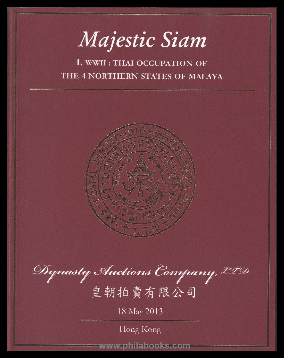Dynasty Auctions Company, Hong Kong: Majestic Siam, Jay Sirirattumrong Collections of: WWII Thai Occupation of the 4 Northern States of Malaya (1942-1945), Part 1, May 18, 2013, color catalog, 265 lots, 138 pages. #70080