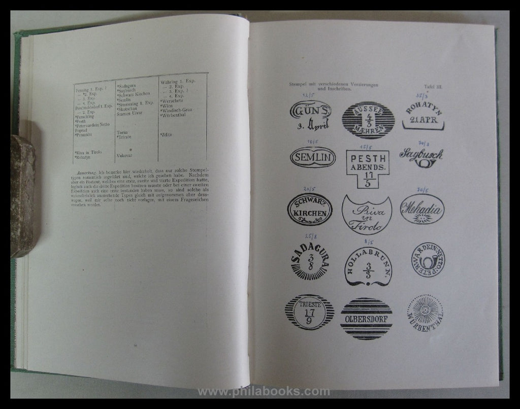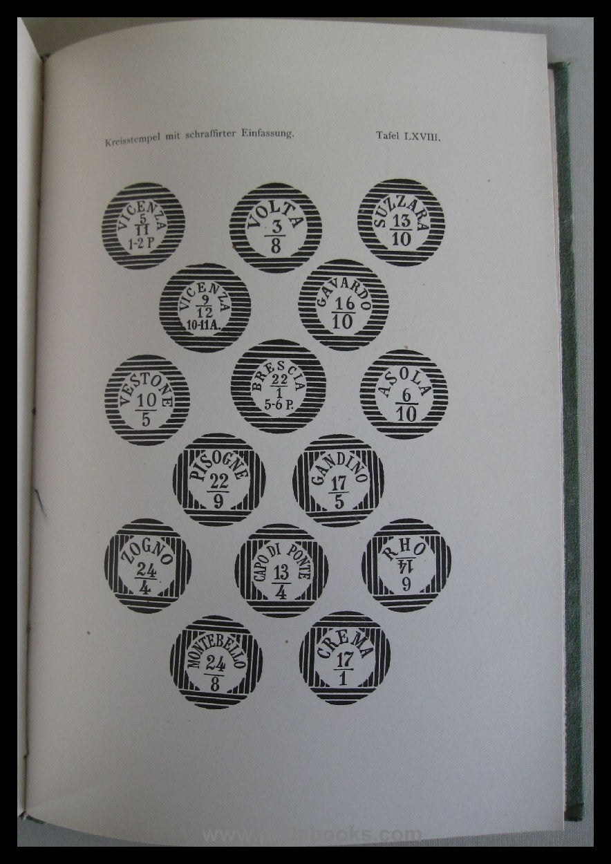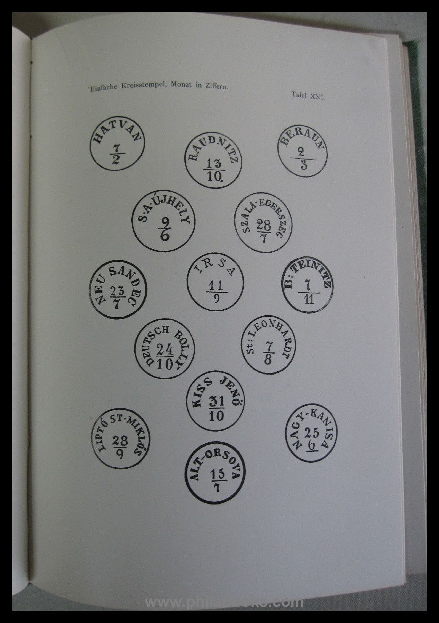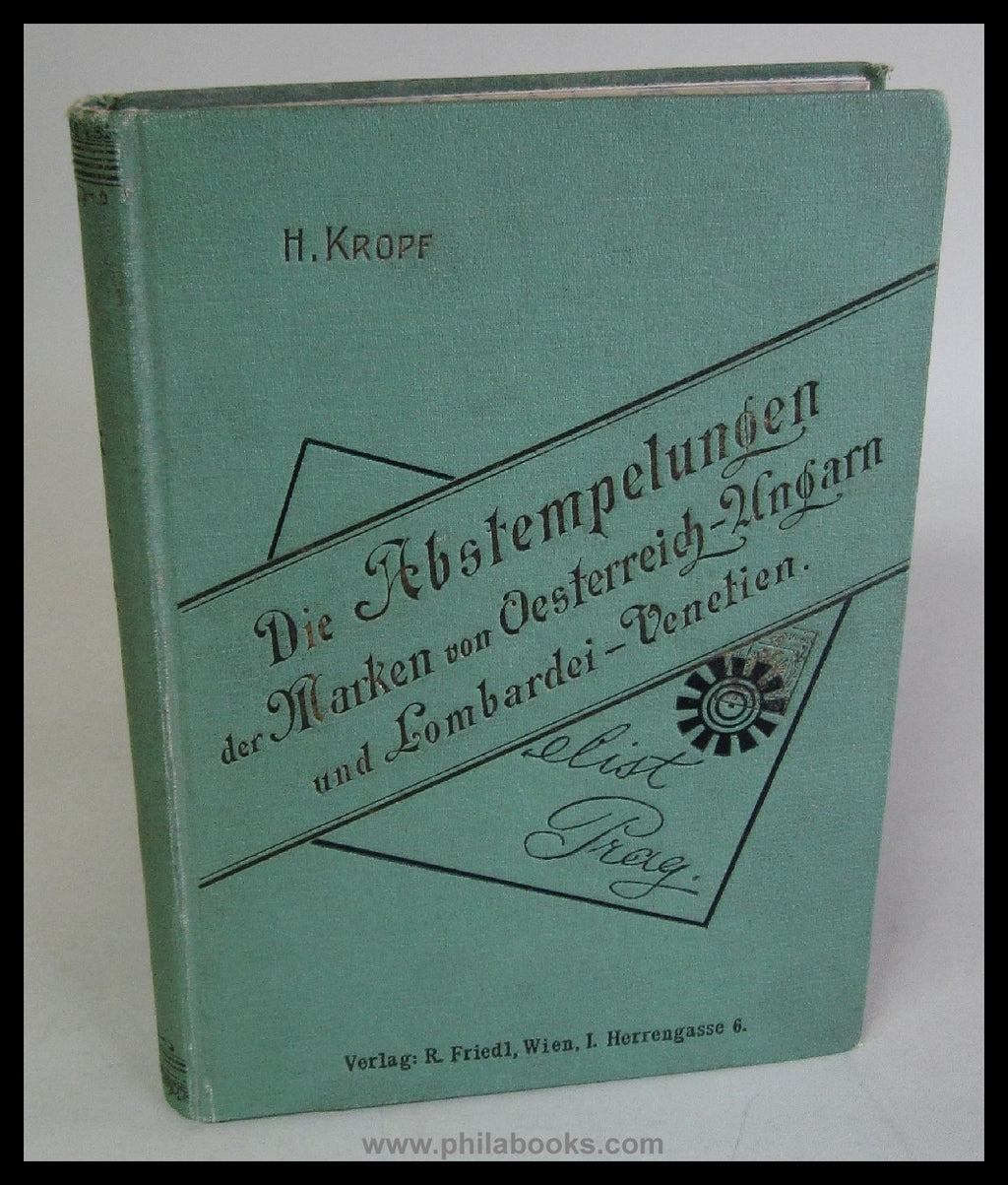 Kropf, H., The cancellations of the stamps of Austria-Hungary and Lombardy-Venetia, published by "Austria-Philatelist", Prague 1899, here the reprint of the classic and rare work, now in light green linen with the imprint on the front cover "Publisher: R. Friedl, Vienna, Herrengasse 6.", 162 pages + 71 plates with 959 illustrations, a beautiful work that should not be missing in any classic Austrian library! #70115
