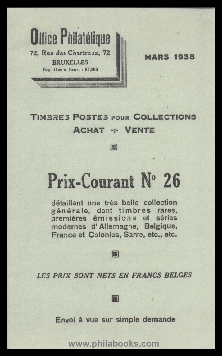 Van Bierbeek, Bruxelles, Offres Speciales, 2 price lists from the 1930s, one with 8 photo plates, as well as a list from March 1938 from the 'Office Philatélique ebenlalls in Brussels, very well preserved #70637