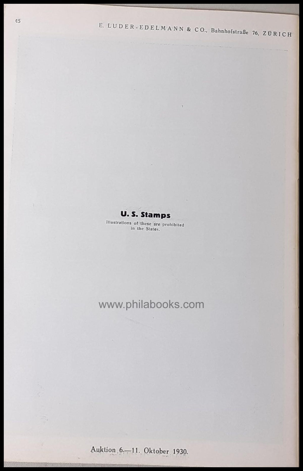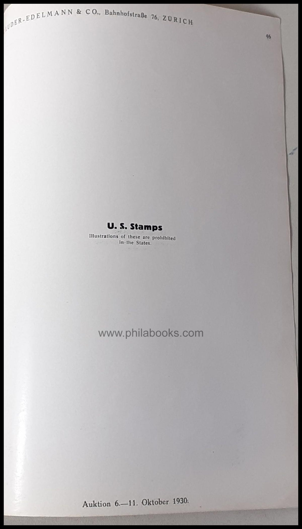Luder-Edelmann, Zurich XVII. Stamp Auction, 06.-11.10.1930, here the rare photo plates for the catalogs sent to the USA, pages 45-47 without illustrations with the imprint 'US Stamps. Illustrations of these are prohibited in the States', first copy registered with us, slight signs of age and wear #70674