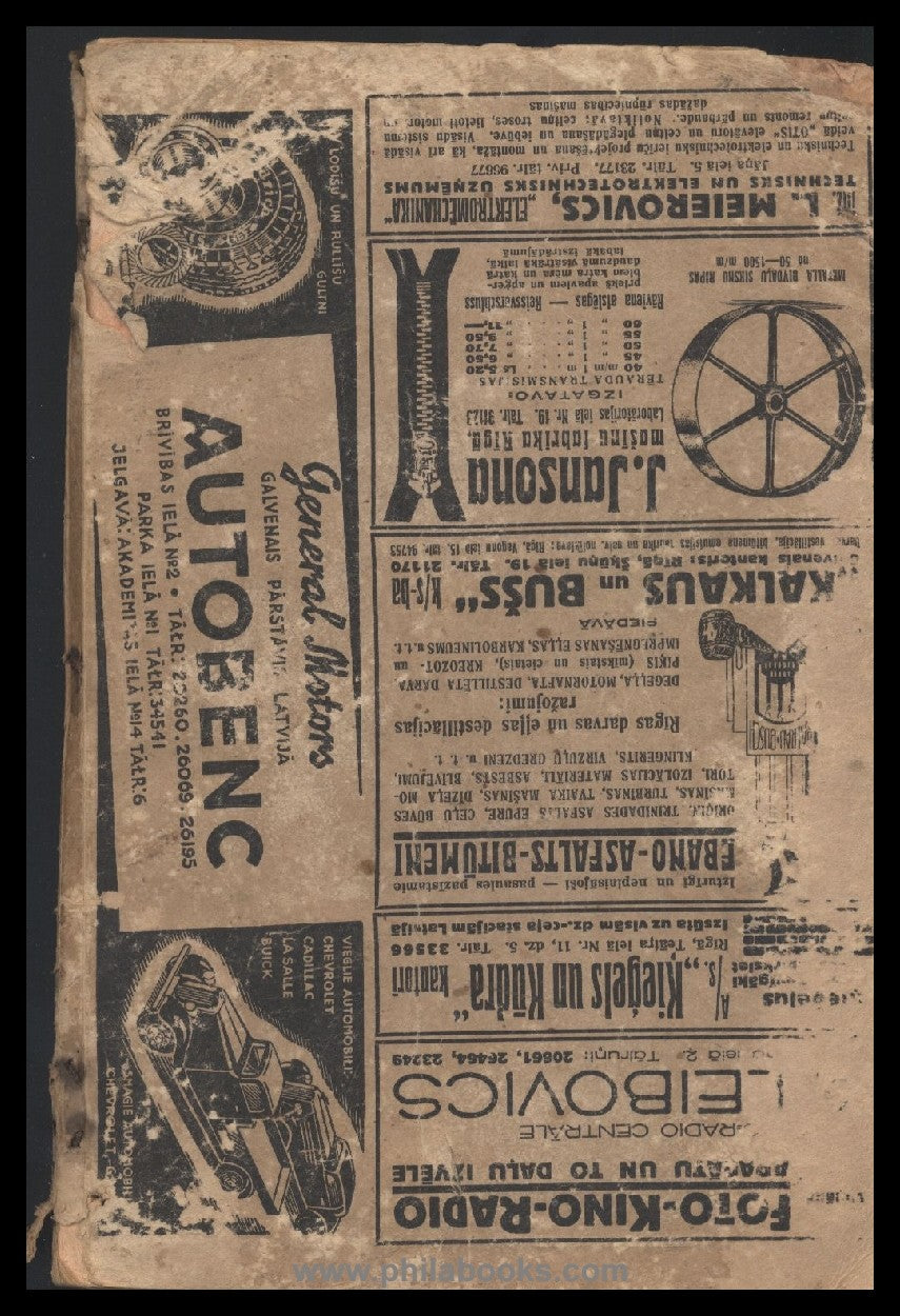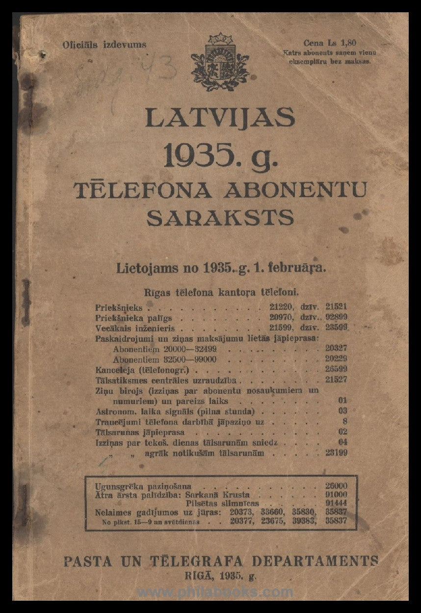 Pasta un Telegrafa Departaments, Latvijas 1935. g. Telefona Abonentu Saraksts, telephone book Latvia, with street and house number information, cover defects, inside in good condition, hard binding #70752