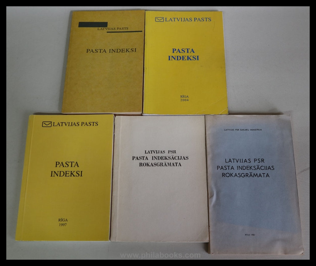 Latvijas Pasts, Pasta Indenski, official postcode directories from 1975, 1982, 1992 (with map), 1997, 2003 and 2004, total of 6 pieces #70772