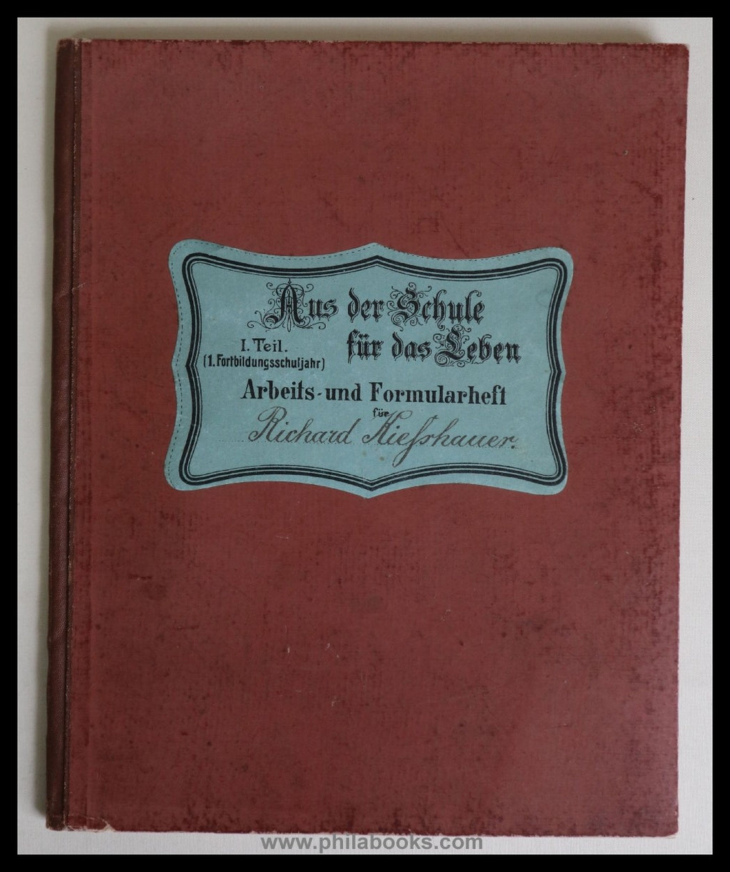 Tischendorf, J., From the School for Life, A three-part workbook and form booklet following the preparation work for further education schools, Part 1, 5th edition, Meissen, around 1900, containing information on the correct writing of letters, postcards, parcel cards, postal orders, telegrams, etc. with sample illustrations, issued to a student 'Richard Kießhauer' with handwritten CV and sample dictation #70916