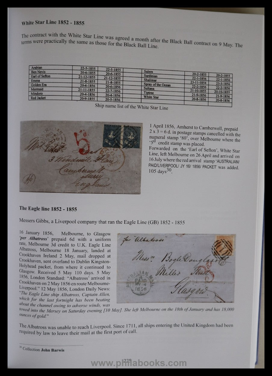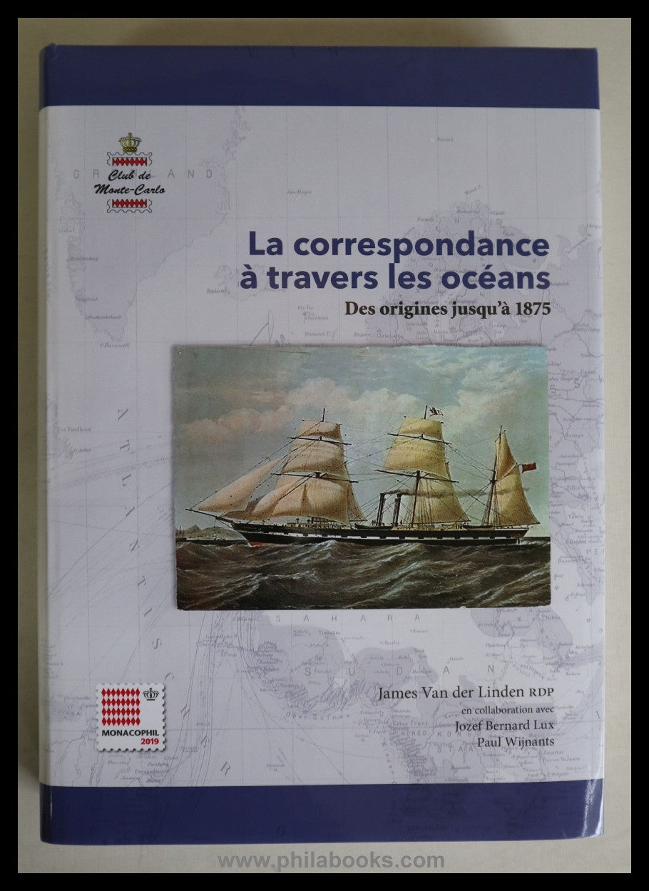 van der Linden, James in cooperation with Jozef Bernard Lux, Paul Wijnants: Mail Across the Oceans, From the beginning to 1875, The Study of Packet lines, the history, the ships, the ports, the routes and the specific markings, North Atlantic - South Atlantic - Indian Ocean-Pacific, Monaco, 2019, 296 pp., with countless color illustrations, maps, timetables, etc., the whole thing is also translated into French in reverse print, also 296 pp., cloth with dust jacket. New from the publisher, all covers slightly bumped. #70980
