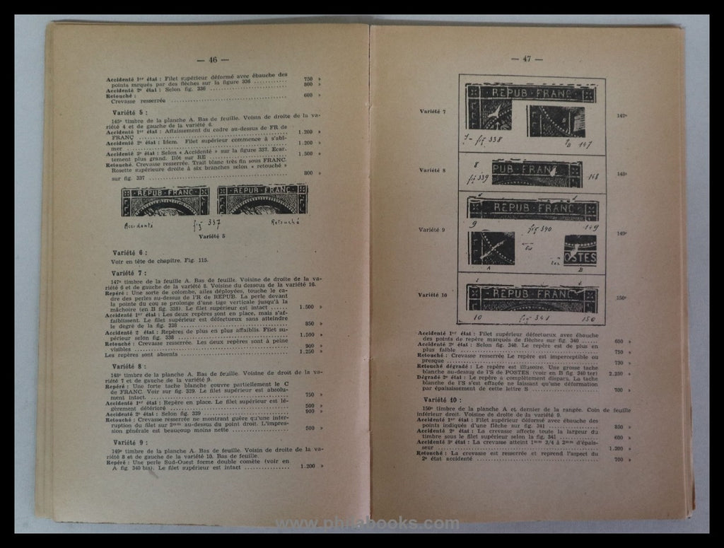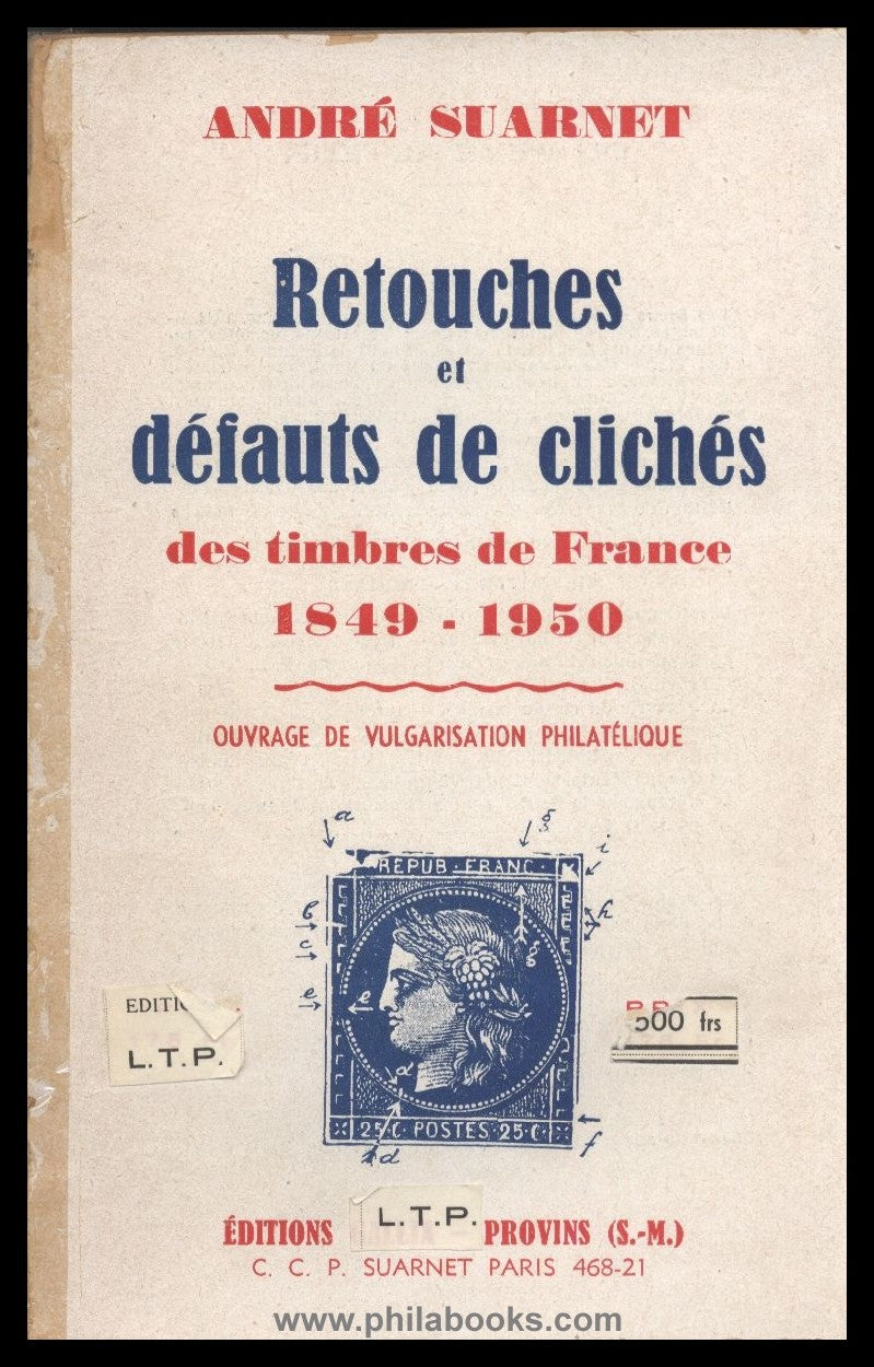 Suarnet, A., Retouches et défauts de clichés des timbres de France 1849-1950, Éditions Gallia, Paris, 1950, Plate Error Manual, 106 pp. with detailed enlargements, spine pasted over, the paper browned #71543