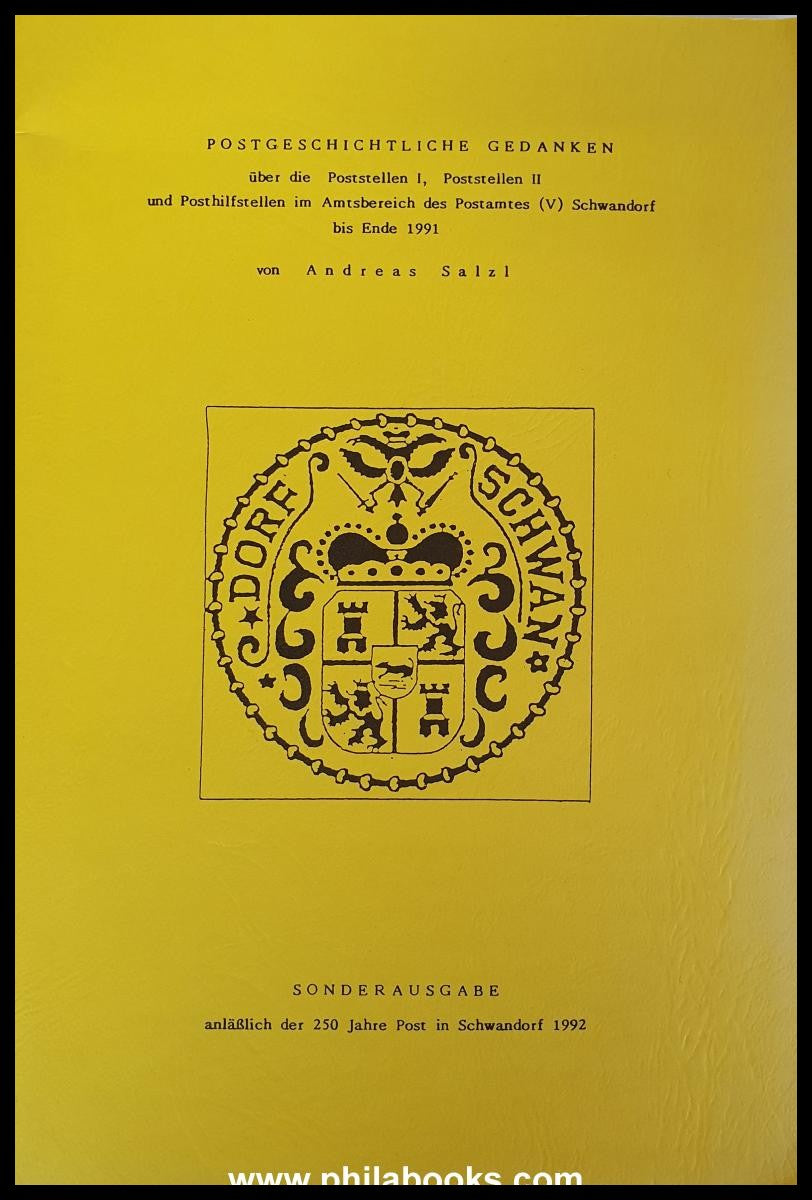 SCHWANDORF: Salzl, A. Postal history thoughts on the post offices 1, post offices 2 and postal assistance offices in the administrative area of the post office (5) Schwandorf until the end of 1991, 78 p., with illustration #71714
