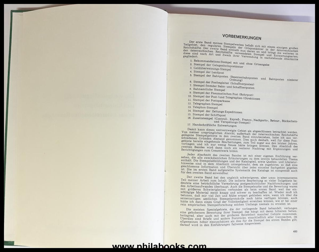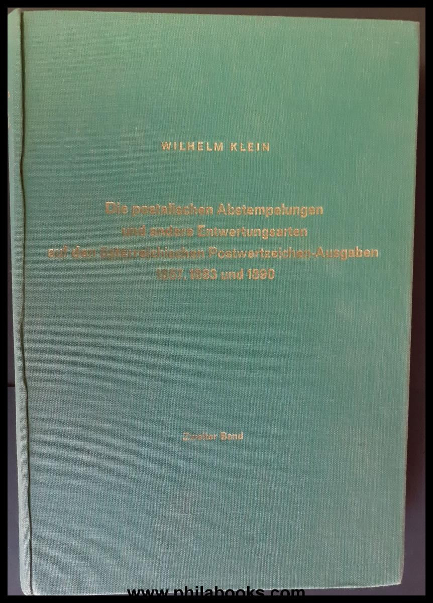 Klein, W., The postal cancellations and other types of cancellation on the Austrian postage stamp issues of 1867, 1883 and 1890, second volume, The other postmarks and types of cancellation in the Austrian half of the empire, 1973, green linen, approx. 315 pages, here the sought-after 2nd volume in good condition #71837