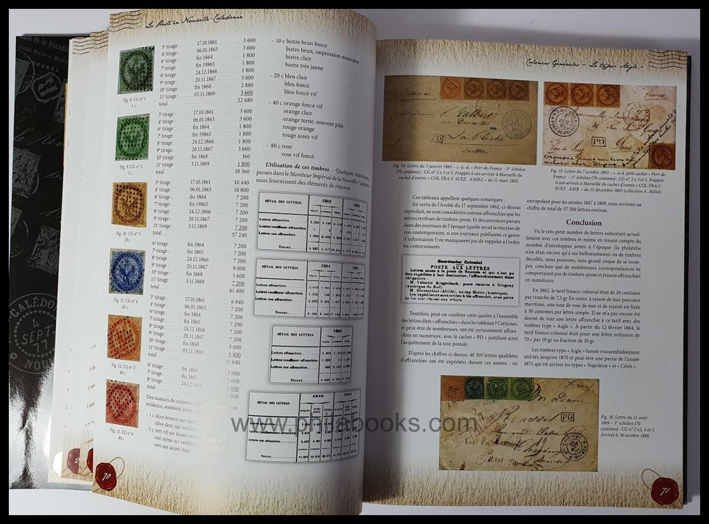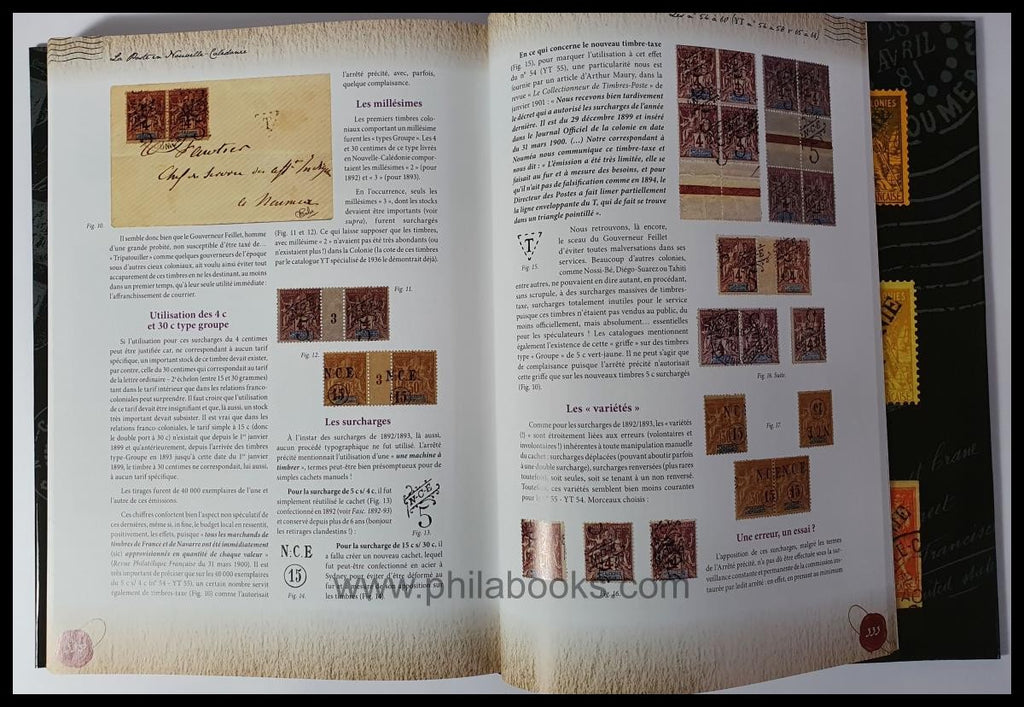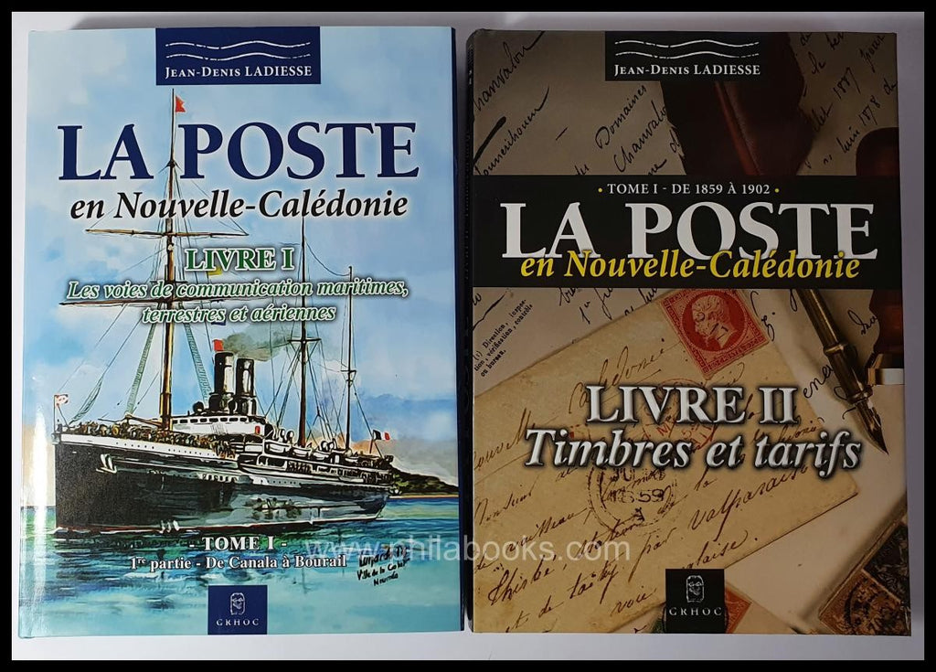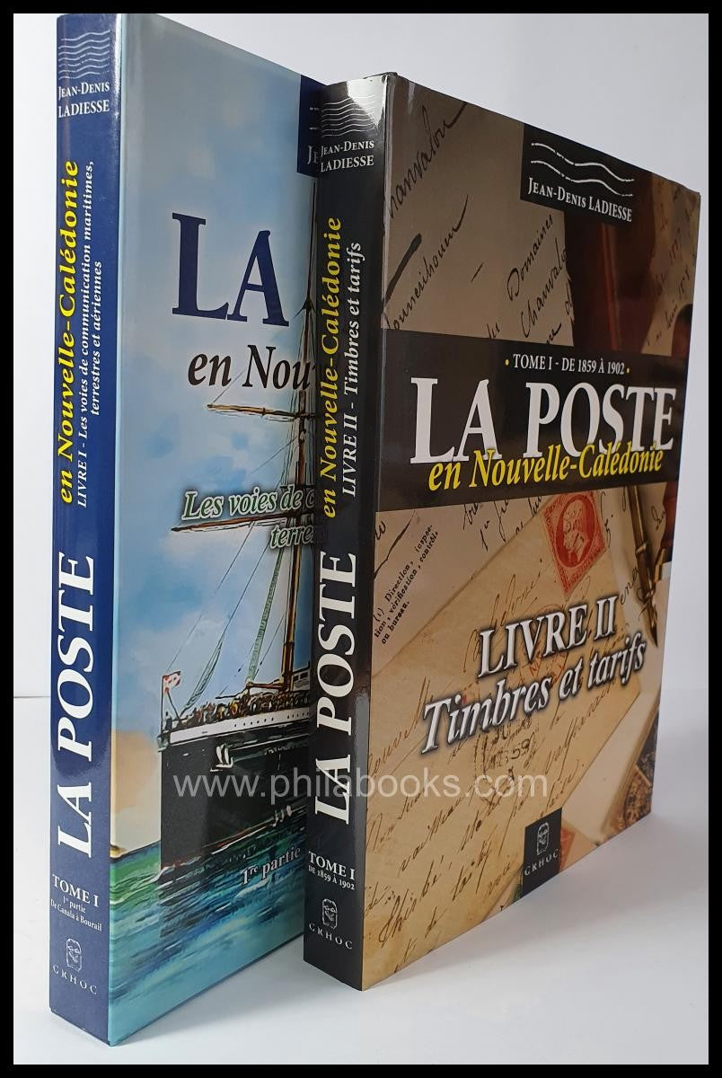 Ladiesse, Jean-Denise: La Poste en Nouvelle-Calédonie, Livre I, Les voies de communication maritmes terrestres et aérienne, Tome II Timbres et tarifs, 2013/2014, stamps, stamp and postal history handbook of New Caledonia in 2 volumes, 348 pp. & 358 pp., richly illustrated in color, the stamps with values in euros, the stamps very specialized, with plating, varieties etc., the 2nd volume, hardcover with dust jacket, hot off the press #71885