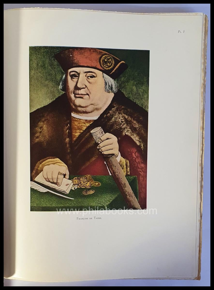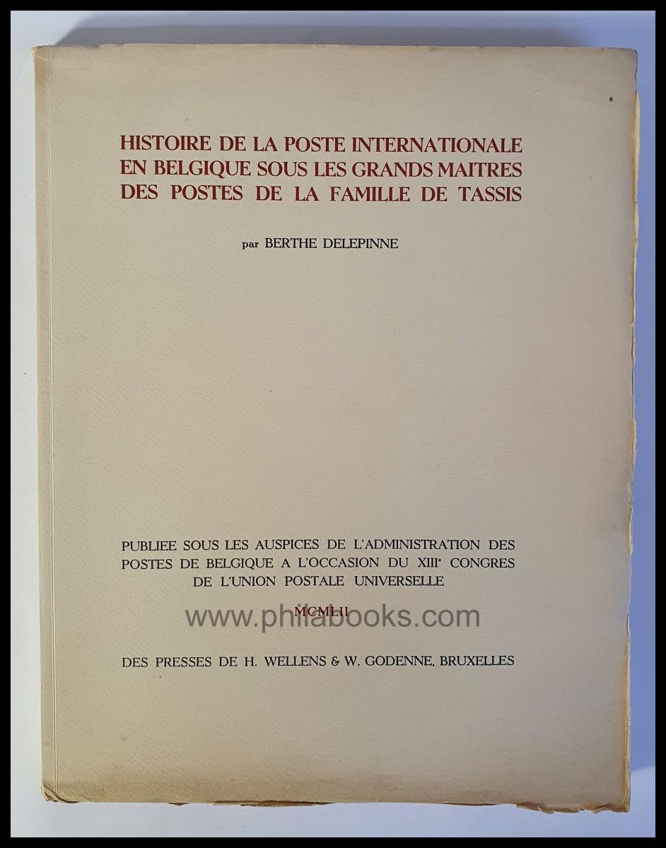 Delepinne, B., Histoire de la poste internationale en Belgique sous les grands maitres des Postes de la famillie des Tassis, 1952, bibliophile large-format work on laid paper with 31 plates (3 of them colored), 110 pp., because the pages were cut by the author himself, the paper edges are, as is usually the case, somewhat irregular and also slightly stained, otherwise in good condition #71911