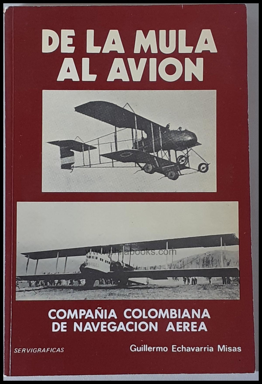 Echavarria Misas, G., De la Mula al Avion, Compania Colombiana de Navegacion Aerea, Servigraficas, Medellin, 1982, general treatise on the beginnings of the Colombian airline CCNA, which then became SCADTA, Echavarria was one of the founders of the CCNA, rare book 97 pp., with photos #72111