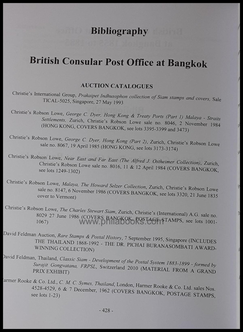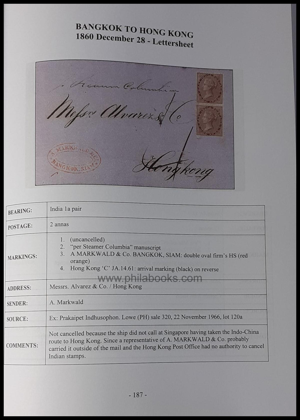 Houde, Michel R.: British Consulate Post Office at Bangkok 1855 to 1885. A comprehensive study of stamps, covers and historical documents, 2021, comprehensive handbook of the Straits Settlement stamps for Malaya with 'B' overprint for Bangkok, including the stamps with existing varieties, the stamps, existing forgeries, a registry of known letters, all of which are illustrated in color with provenance information, as well as general information about the senders, some of which are German trading companies, then important auction catalogs and a bibliography, well-known philatelists in this collecting area, etc. XIV pp./454 pp., with many, mostly colored illustrations, hardcover, fresh from the press, highly recommended! #72356