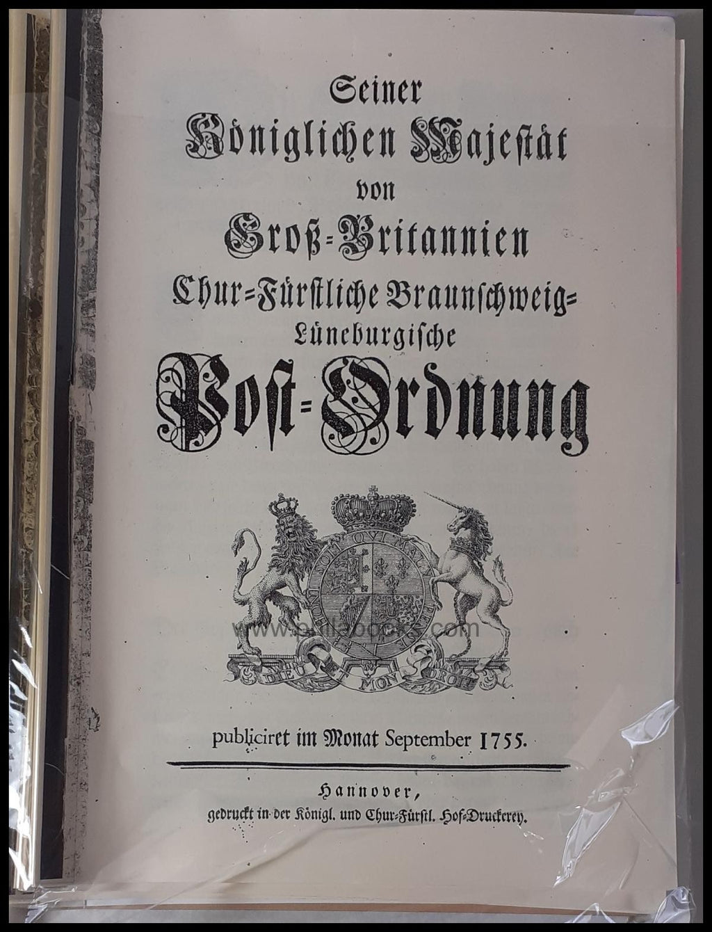 His Royal Majesty of Great Britain Chur-Fürstliche Braunschweig-Lüneburgische Post-Ordnung, here a small collection of 7 simple reprints of the editions from 1682-1755 #72358