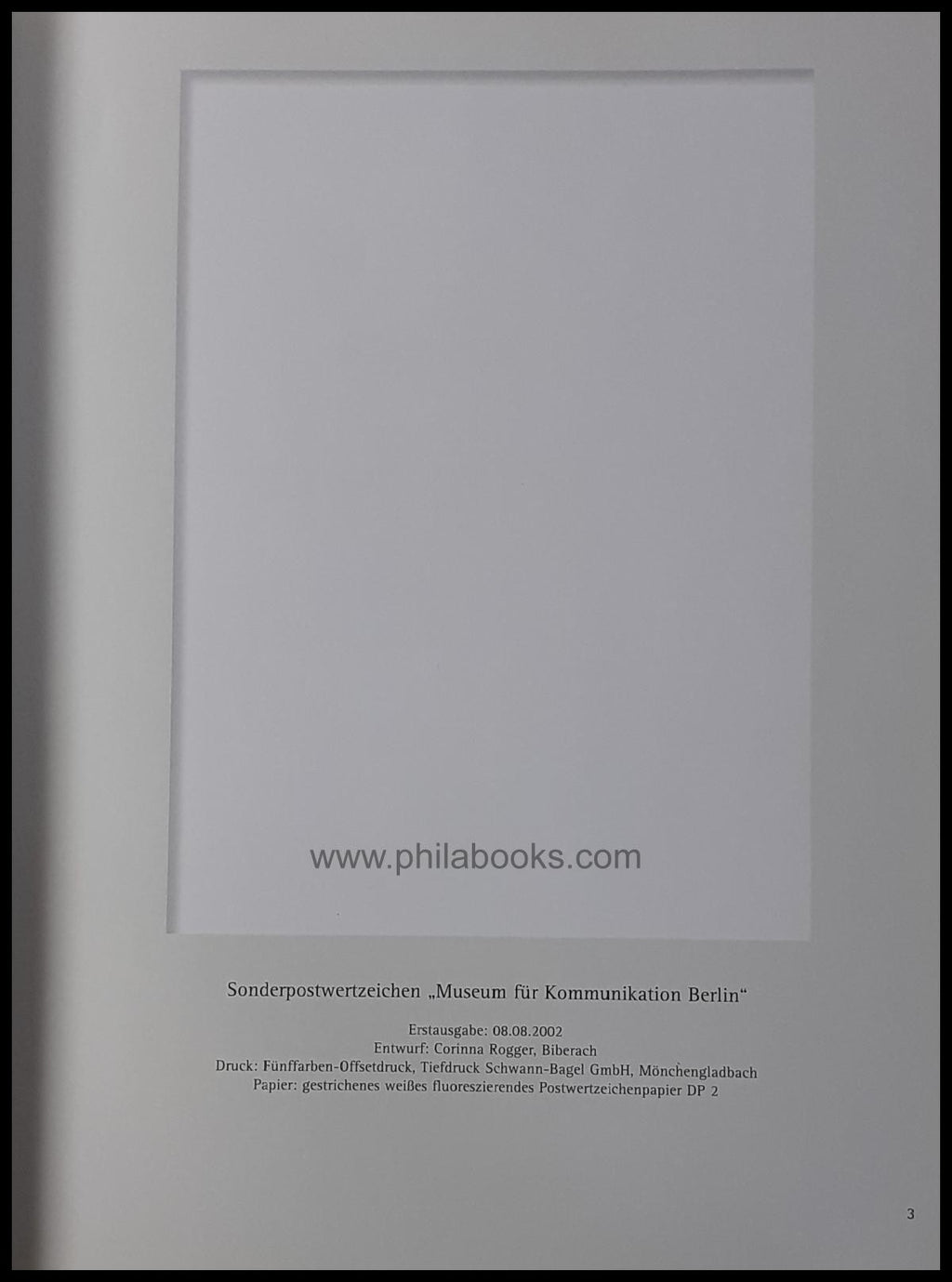 Hahn, A. (ed.), Treasures of Philately, From the Archives of the Museum Foundation for Post and Telecommunications, 2002, 288 pp., Kdrp., color, highly interesting and splendid documentation of the collection holdings, some of which still come from the Berlin Reich Postal Museum, here is an ADVANCE COPY from the Friedrich Meyer Library, which was involved in the creation with a blank page 3 without the special stamp, the stamp issue was not yet available at the time. A corresponding proof is still included for the buyer. [You can find more information on our 'Info' page!] #72534