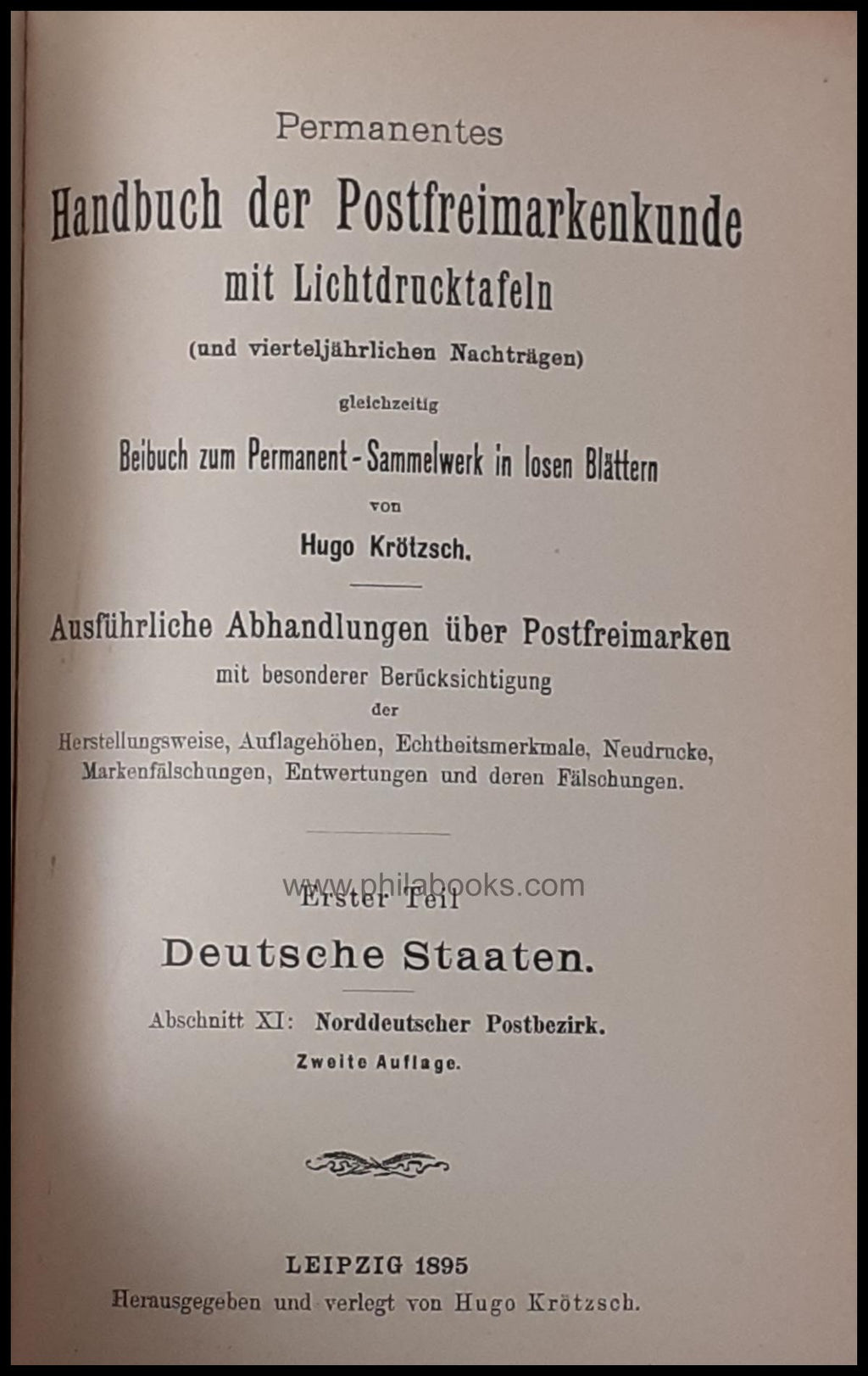Krötzsch, H., Handbook of Postal Stamps, Section XI, North German Postal District, 1894, 140 pp., signs of wear, Plate I missing, otherwise Plates II-XX present, #72890