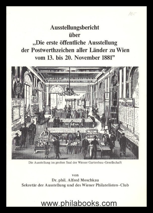 1881, Moschkau, A., Ausstellungsbericht, Erste öffentliche Ausstellung der Postwertzeichen aller Länder, Wien 1881, hier als broschierter Nachdruck von 1987, Kunstdruckpapier, 36 S., Abb. #100479