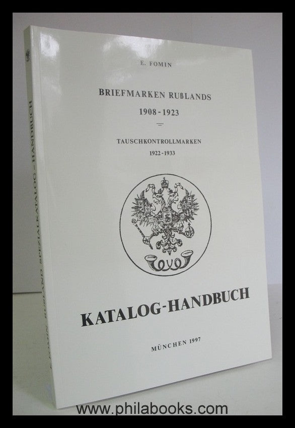 Fomin, E., Briefmarken Rußland 1908-1923, Tauschkontrollmarken 1922-1933, Katalog-Handbuch, 1997, nur im Eigenverlag erschienen, hier die broschierte Ausgabe, verkaufte Auflage ca 150-200 Exemplare, 292 S., Kunstdruckpapier, ca 600 Abb., wohl ausführlichstes deutsches Handbuch für die Ausgaben von 1908-23, durch die Übernahme des Restbestandes von seinerzeit 40 Exemplaren, noch 10mal zum Sonderpreis lieferbar. Weitere Informationen unter 'Info'. #102120