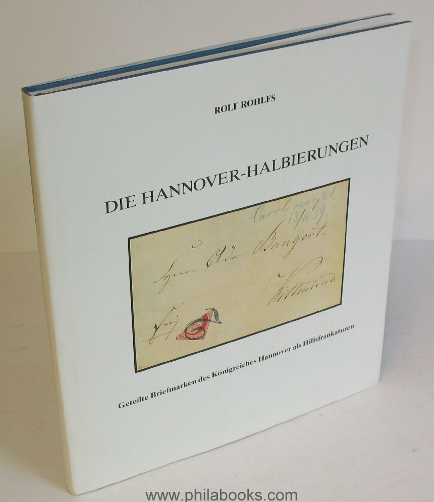 Rohlfs, R., Die Hannover-Halbierungen, geteilte Briefmarken des Königreiches Hannover als Hilfsfrankatur, 1986, 118 S. mit über 100 meist farbigen Abb. der bekannten Stücke auf Briefstück oder Brief, nummerierte Ausgabe von 500 Exemplaren, hier die frühe Nummer '7', signiert, Schutzumschlag wie meist mit Gebrauchsspuren, sonst sehr gut erhalten #102906