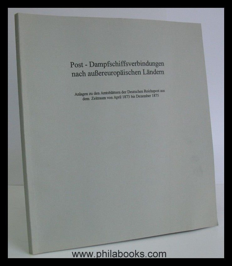 Post-Dampfschiffsverbindungen nach außereuropäischen Ländern, Anlagen zu den Amtsblättern der Deutschen Reichspost aus dem Zeitraum von April 1873 bis Dezember 1875, broschierter Kopie der s/seltenen Orig., enthalten Angaben zu Abgangsdaten/Häfen, 124 S. 6. Post-Dampfschiffsverbindungen nach außereuropäischen Ländern, publiziert alle 14 Tage als Anlagen zu den Amtsblättern der Deutschen Reichspost, hier bis auf 6 Ausgaben für den Zeitraum der Brustschildausgaben und dem damit besonders interessanten Zeitraum 'vor UPU' von April 1873 (Liste Nr. 1) bis Dezember 1875 (Ende der Brustschildzeit) komplett als broschierter Kopie der sehr seltenen Originale. Die Listen enthalten Angaben zu den Abgangsdaten und den Abgangshäfen, somit eine wichtige Grundlage zur Bestimmung der Beförderungswege, 124 Seiten. Die Listen waren laut Verordnung vom 7. März 1873 nicht den Amtsblättern beizubinden sondern im Postamt auszuhängen. Beim Eintreffen der neuen Liste wurden die alte meist gleich vernichtet. Aus diesem Grund sind die Listen heute so ungeheuer selten. #102909