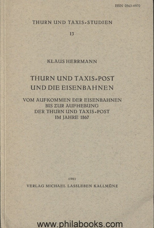 Herrmann, K., Thurn und Taxis-Post und die Eisenbahnen, vom Aufkommen der Eisenbahnen bis zur Aufhebung der Thurn und Taxis-Post im Jahre 1867, 1981, 371 S., s/gutes Exemplar dieser vergriffenen Studie! #21133