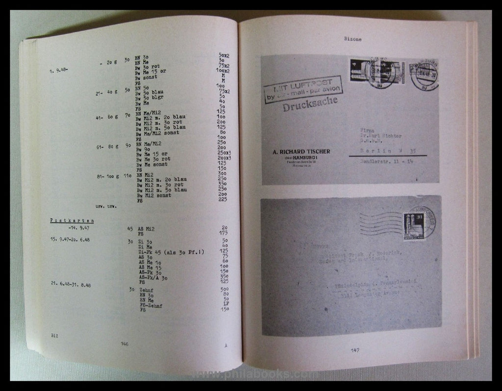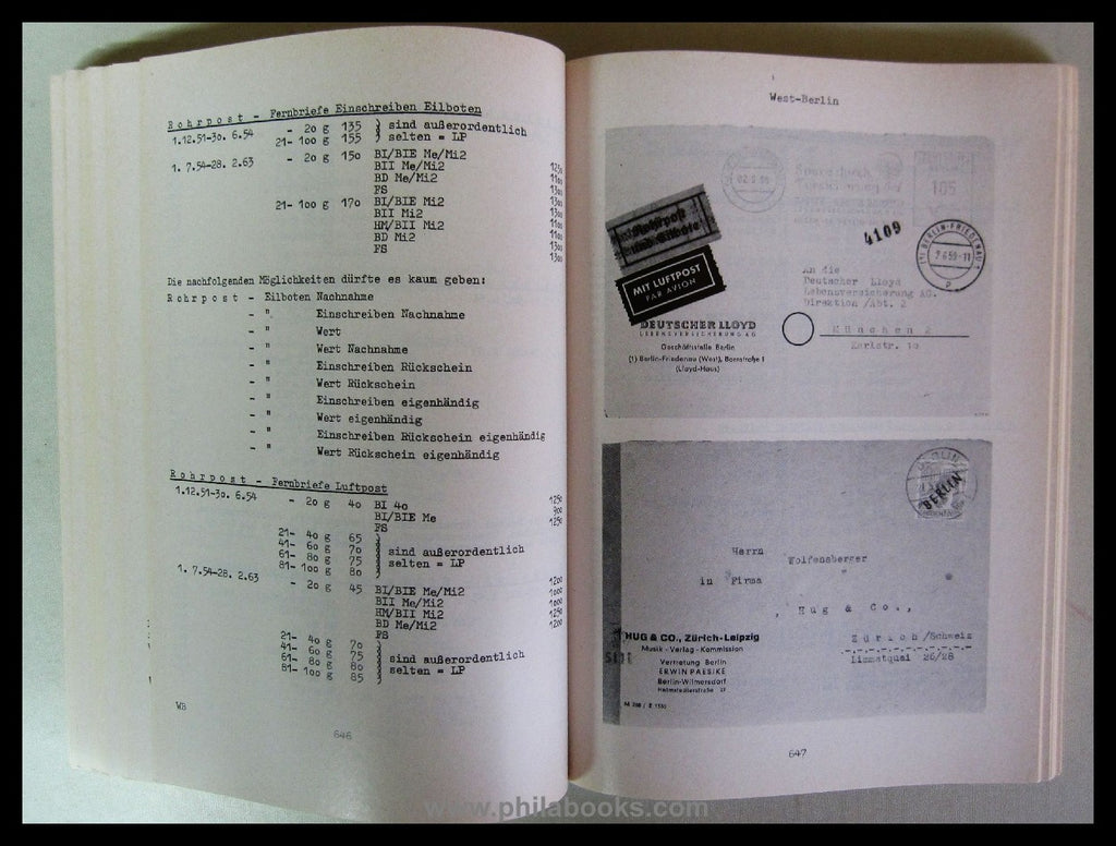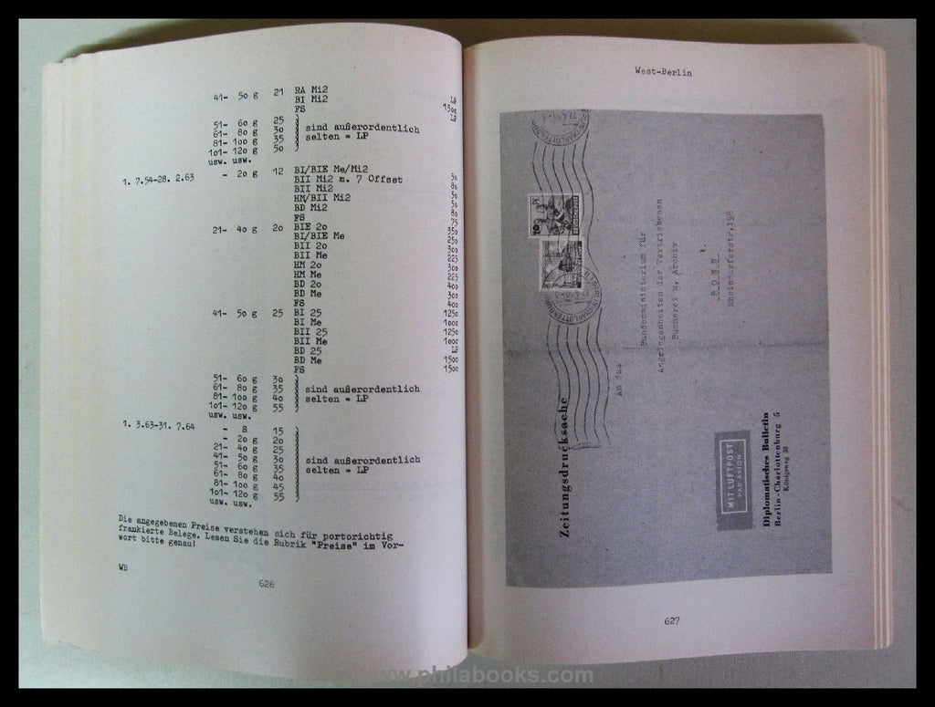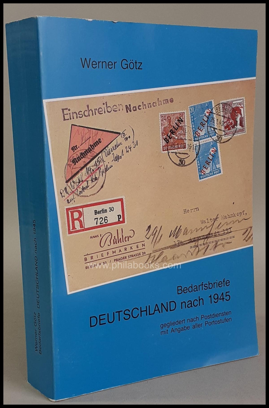 Götz, W., Bedarfsbriefe Deutschland nach 1945, gegliedert nach Postdiensten mit Angabe aller Portostufen und durchgängig mit Bewertungen (in DM),1980, 1051 S., hier ein sehr gutes Exemplar ohne die bei den meisten Exemplaren vorkommenden Bindungmängel die ganze Auflage hat eine schwache Klebebindung,) nicht wieder aufgelegt und entsprechend gesucht, das Standardwerk für die Tarife nach '45'! #26485