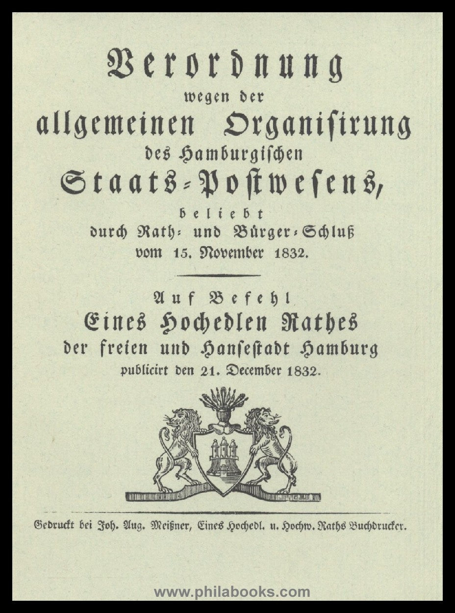 Verordnung wegen der allgemeinen Organisirung des Hamburgischen Staats-Postwesens, 1832, 27 S., gefälliger Nachdruck in Originalgröße #26667