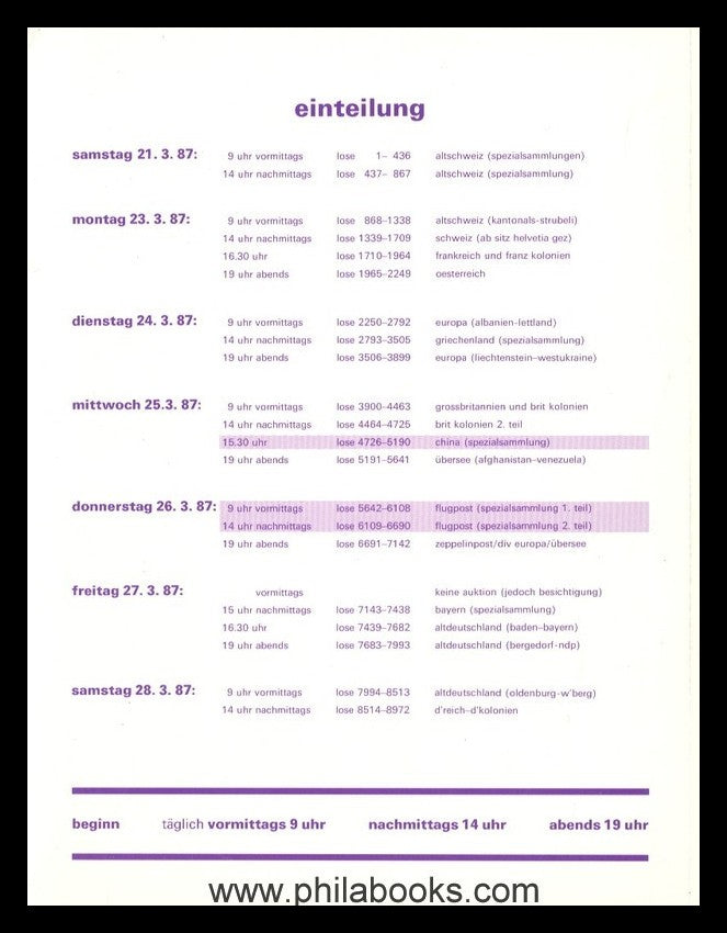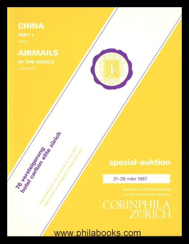 Corinphila 076. Auktion, 21.-28.03.1987, Sonderkatalog mit Ming Sammlung China, Teil 1 sowie Cattanéo Sammlung Airmails of the World, viele Abb., EL (Fotokopie), gesuchter China-Katalog, der bei uns ständig angefragt wird, hier wieder einmal ein antiqiarisches Ex. in guter Erhaltung #35550