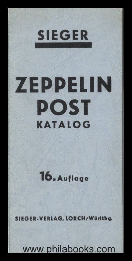 Sieger, Zeppelin Post Katalog, 16. Auflage, 1956, 229 S., fester Einband, Vorblatt etwas fleckig, sonst gut erhalten #P-00005