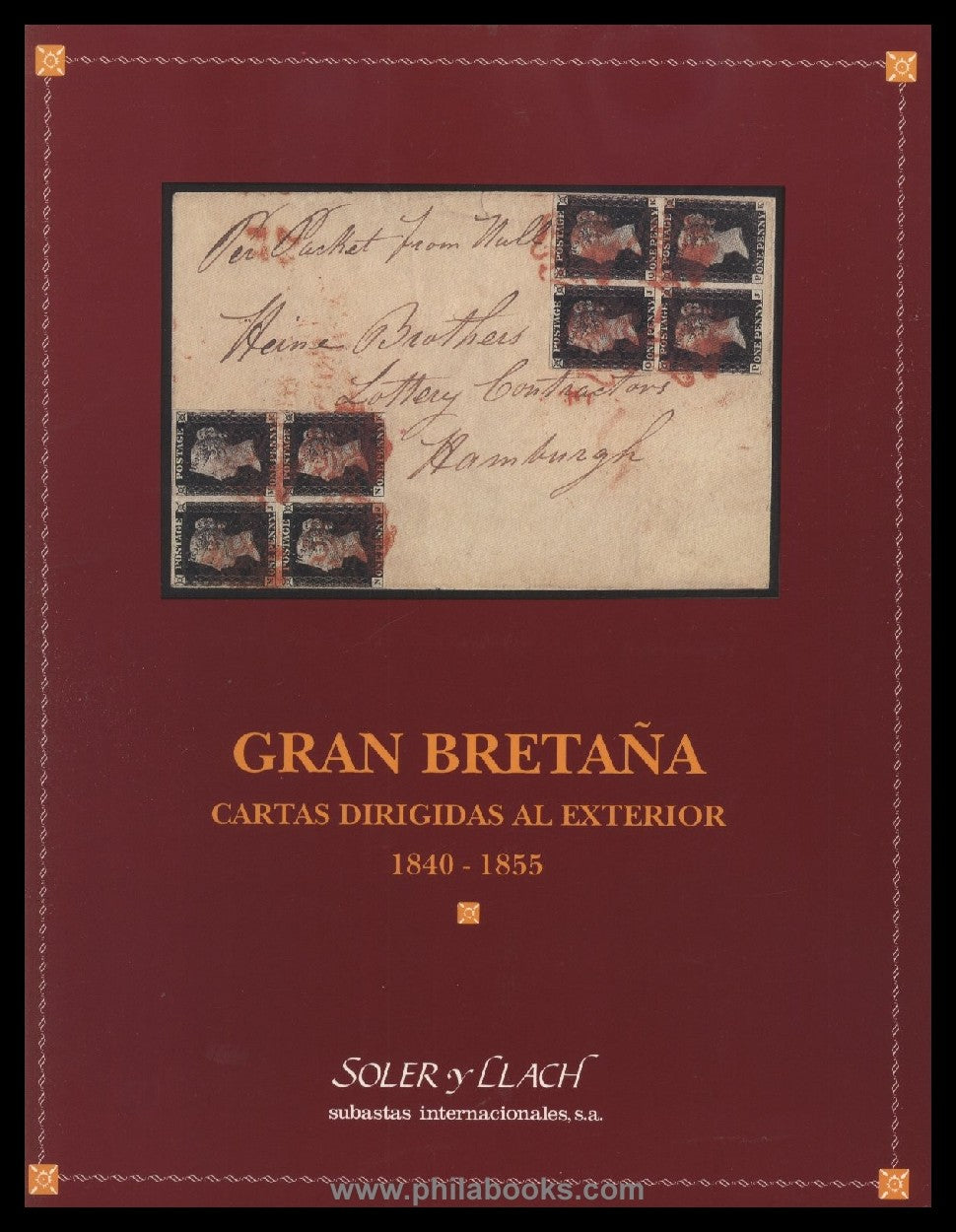 Gran Bretana Cartas Dirigidas al Exterior 1840-1855, Sonderauktion Soler & Llach, Barcelona, 10.6.1993, Farbkatalog Großbritannien-Auslandsfrankaturen, dabei phantastische Stücke, Penny Black 2mal als Viererblock auf Brief nach Hamburg etc., EL #36337
