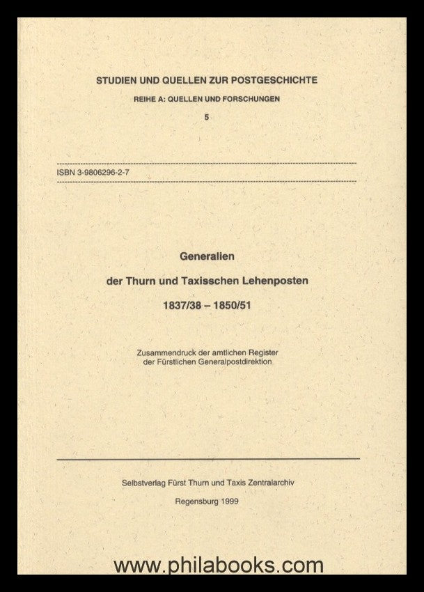 Fürst Thurn und Taxis Zentralarchiv (Hrsg.), Generalien der Thurn und Taxisschen Lehenposten 1837/38 - 1850/51, Zusammendruck der amtlichen Register der Fürstlichen Generalpostdirektion, 1999, 160 S., druckfrisch #37827
