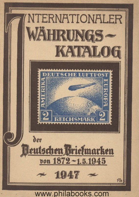 Internationaler Währungskatalog der Deutschen Briefmarken, 1947, 2 Teile, interess. Nachkriegskataloge -vor- Währungsreform mit Vergleichspreisen in Schweizer Franken, dekorative Einbände mit Zeppelin-, Samoa-, Bayern- bzw. Robert Koch-Marke #37893