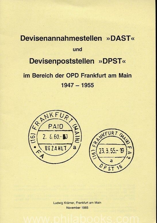 FRANKFURT A.M., Krämer, Devisenannahmestellen 'DAST' und Devisenpoststellen 'DPST' im Bereich der OPD Frankfurt am Main 1947-1955, 1985, 16 S. mit Abb. #38578