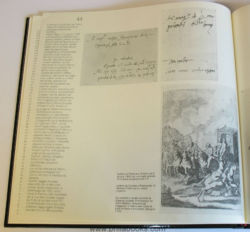 Rigo, Franco: Venezia - Le vie della Posta, 1985, großformatiger Bild-und Textband aus der bekannten bibliophilen Reihe des Venedig-Experten Franco Rigo, in diesem Band über die frühe Post in Venedig ca 1400-1850, 122 S., mit zahlr. Belegabb. und Fotos, Kaufmannsbriefe etc., die erklärt werden, ital. Text, der Einband fingerfleckig, sonst gut #3918