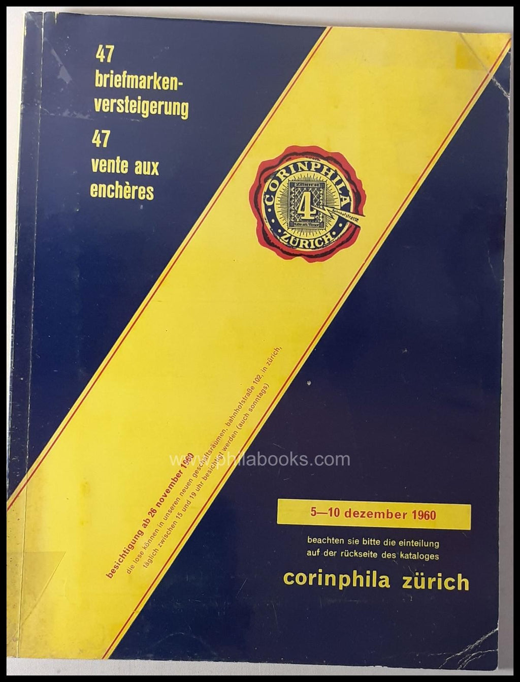 Corinphila, 47. Auktion, 5.-10.12.1960, darin u.a. C. Jewell Argentinien Rivadavia-Ausgaben und Indische Staaten (Briefe) sowie G.F. Laarsen Kolumbien, Napier Iran/Meched, Dr. Arrigo Ancona Lombardei-Venetien, gesamt 6022 Lose, 92 Fototafeln, davon 8 farbig, hier ein gutes Exemplar sehr ordenlich in Klarsichtfolie eingebunden (ohne Verlust entfernbar), mit Nachtrag, gesuchter und nicht häufiger Katalog #40138
