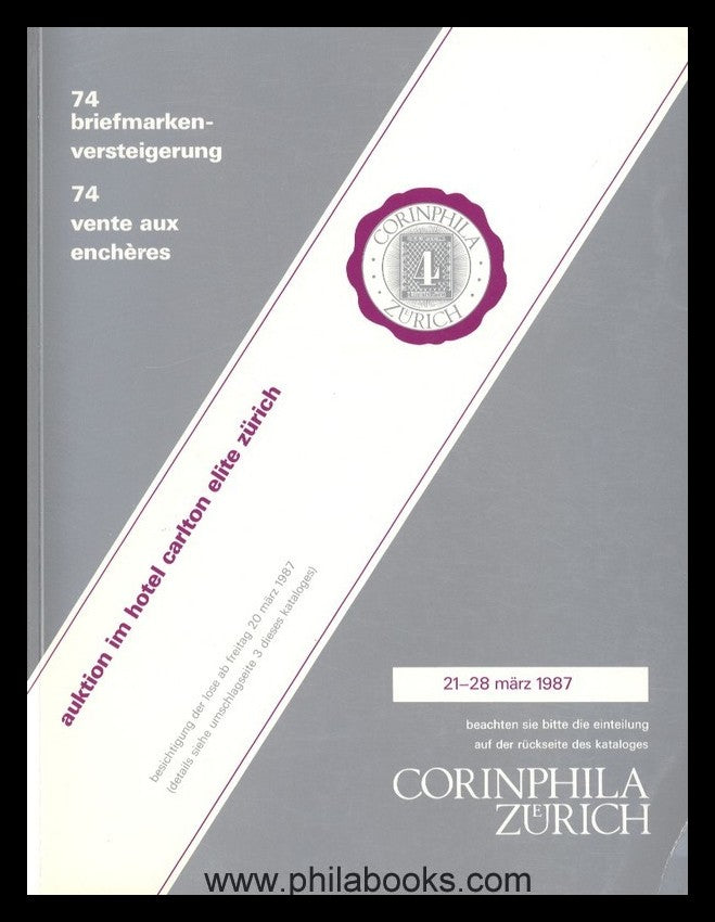 Corinphila 074. Auktion, 21.-28.3.1987, dabei Altdeutschland (besonders Oldenburg) dann u.a. Rumänien Ochsenköpfe auf Brief und Alt-Schweiz, auch GRI-Aufdrucke, sehr gutes Ex. mit EL (Fotokopie) #40148