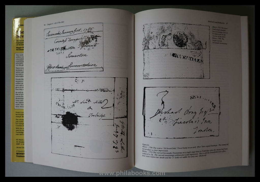 Donald, A., The Posts of Sevenoaks in Kent. Biggin Hill to Edenbridge, Westerham to Wrotham. AD 1085 to 1985/6. An Account of the Handling and Transportation of the Written Communication of Sevenoaks District. 1992. 492 S., mit vielen Abb., Hdb. über die Postgeschichte der englischen Grafschaft Kent und die Postroute London-Hastings. Gut die Hälfte des Buches widmet sich der frühen, vorphilatelistischen Zeit. Gute Erhaltung! #40709