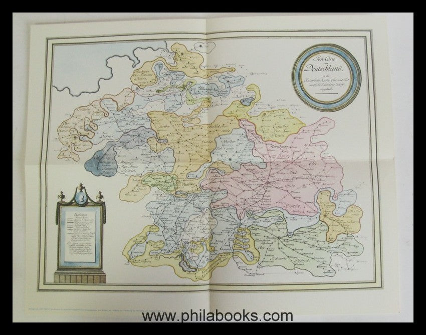 Post-Carte von Deutschland, NACHDRUCK einer farbigen Karte aus dem Jahre 1793 im Format 48,0x38,0 cm, bei der die kaiserlichen Reichpostbezirke eingezeichnet sind, gefaltet, druckfrische Erhaltung #41358