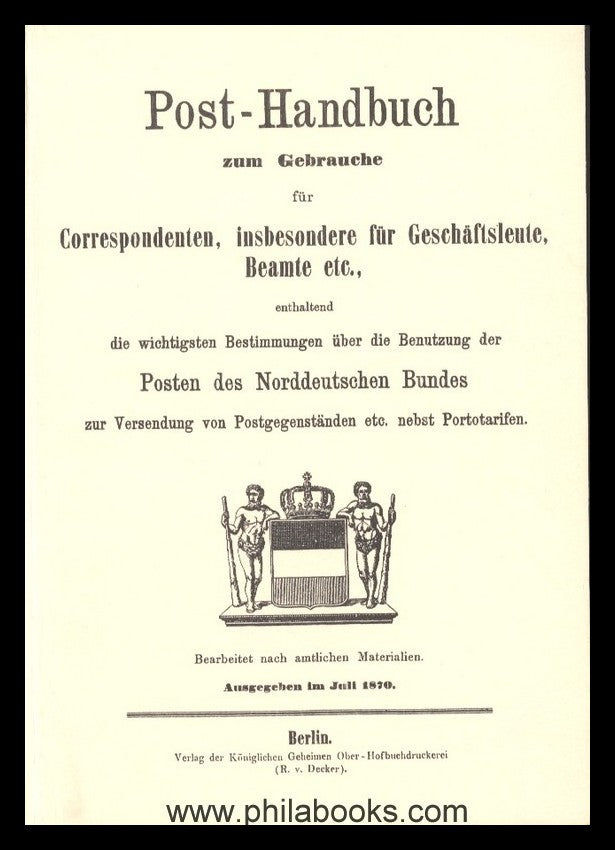 Post - Handbuch zum Gebrauche für Correspondenten, insbesondere für Geschäftsleute, Beamte etc., enthaltend die wichtigsten Bestimmungen über die Benutzung der Posten des Norddeutschen Bundes (...), Juli 1870, Nachdruck 2001, 115 S., Format Din A 5, broschiert, druckfrisch #41366