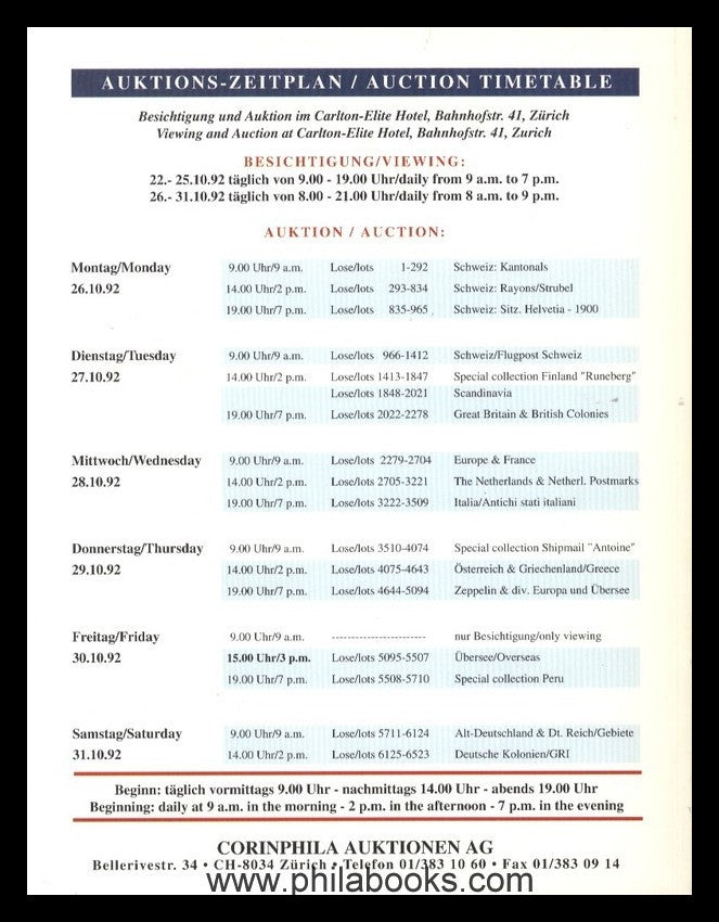Corinphila, 084. Auktion, 26.-31.10.1992, erwähnswerte Sammlung GRI und Togo sowie Frankatursammlung Baden mit Bunt/ Mischfrankaturen und Niederlande Großgold-Sammlung, Alt-Schweiz, sehr gutes Ex. mit EL (Fotokopie) #4148