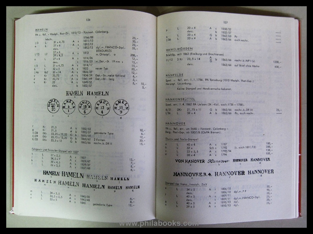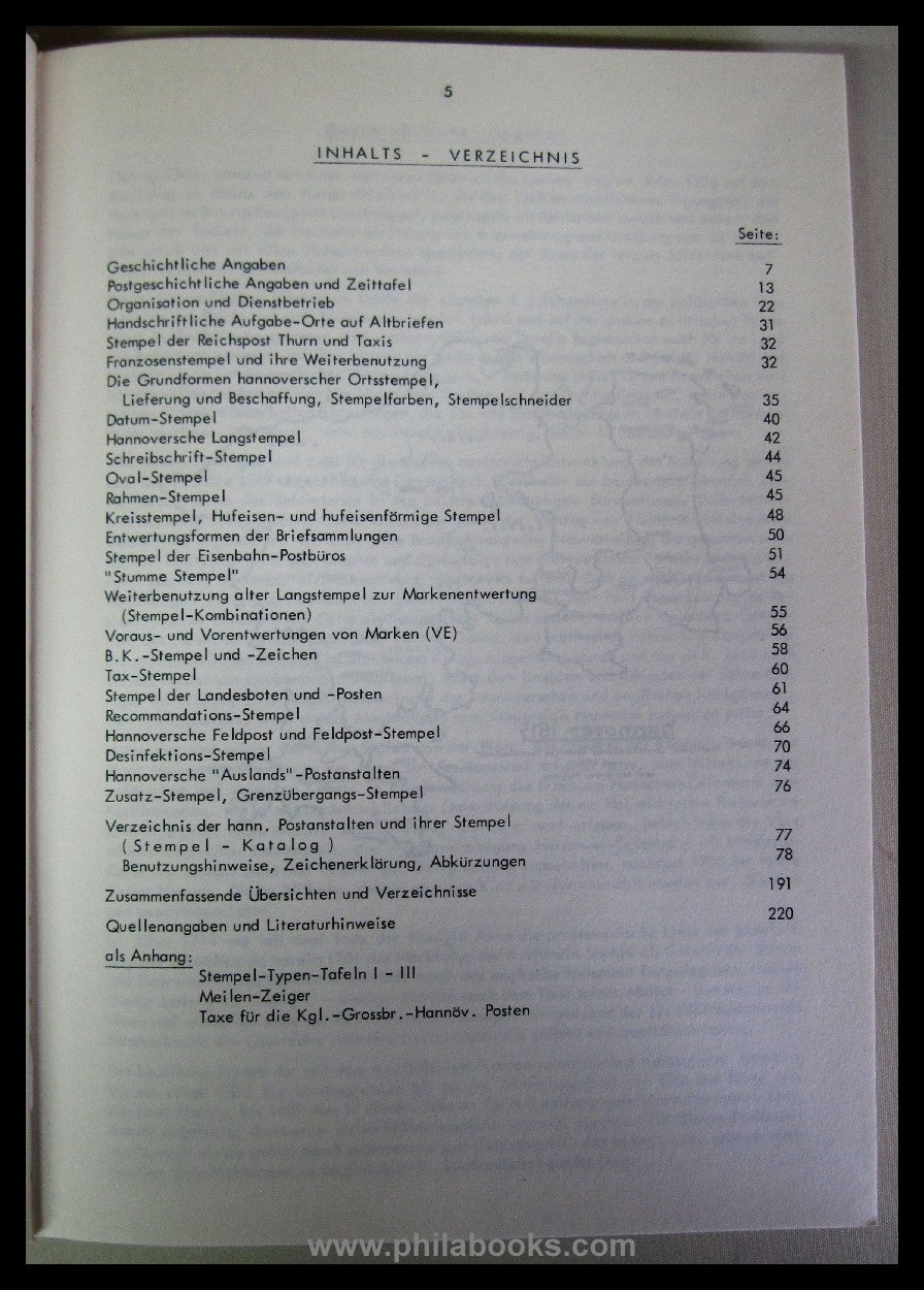Lenthe, A. v., Hannover - Postanstalten und Poststempel, 1971, Katalog und Handbuch, hier die gesuchte 2. letzte Auflage, überarbeitet und herausgegeben von Hans Grobe, 220 S. , mit Bewertungen, kpl. mit allen 5 Beilagen, sehr gut erhalten #43518