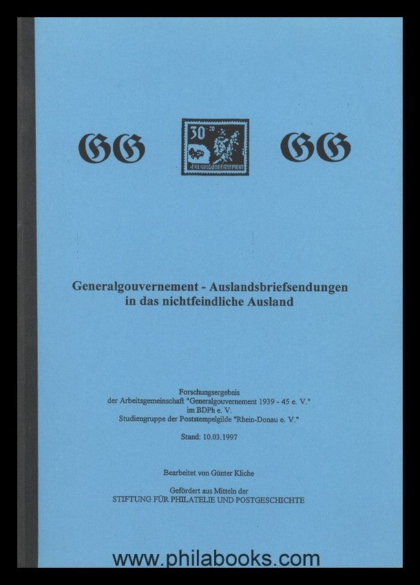 Kliche, Generalgouvernement 1939 - 1945, Generalgouvernement Auslandsbriefsendungen in das nichtfeindliche Ausland, 1997, ArGe - Handbuch Nr.: 20, Neuauflage, 74 S., mit diversen Belegabb. #43673