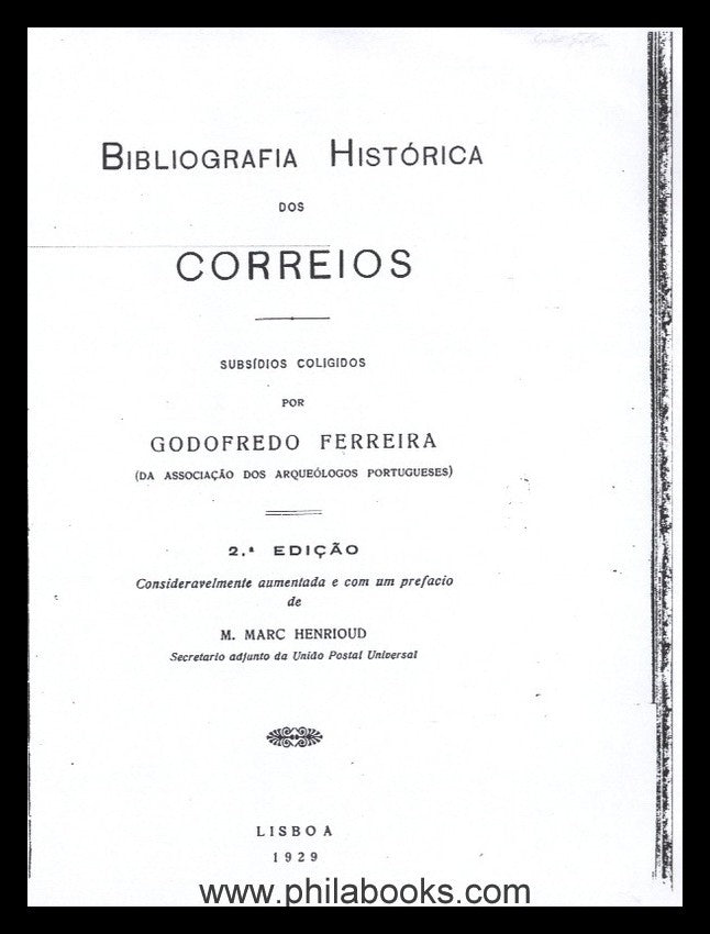 Ferreira, G., Bibliografia do Correios, Lissabon 1929, hier eine einfache ungebundene Kopie des äußerst seltenen Bestandsverzeichnisses der portugiesischen Postbibliothek, Verfasser war Inspektor der portug. Postverwaltung, 65 S., einige Abb. Enthält Titel in allen europäischen Sprachen. #44796