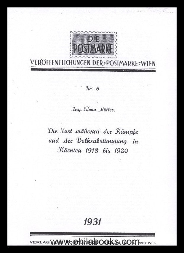 Müller, E., Die Post während der Kämpfe und der Volksabstimmung in Kärnten 1918 bis 1920, Die Postmarke Veröffentlichung, Wien, Nr. 6, 1931, hier als lose KOPIE, Original selten #45338