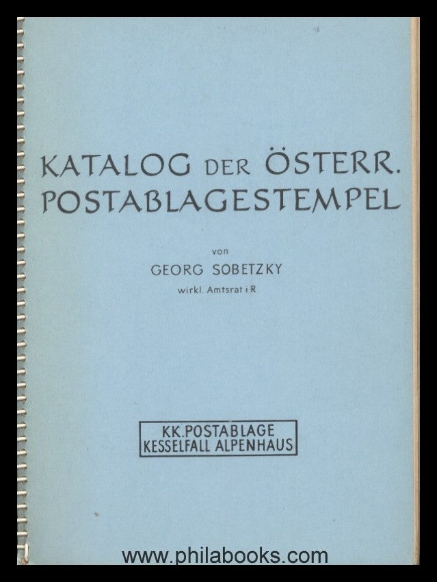 Sobetzky, G., Katalog der Österreichischen Postablagestempel, 1963, 298 S., mit Bewertungsangaben in Punkten, Spiralbindung, Papier altersentsprechend etwas gebräunt, sonst gut erhalten #45502