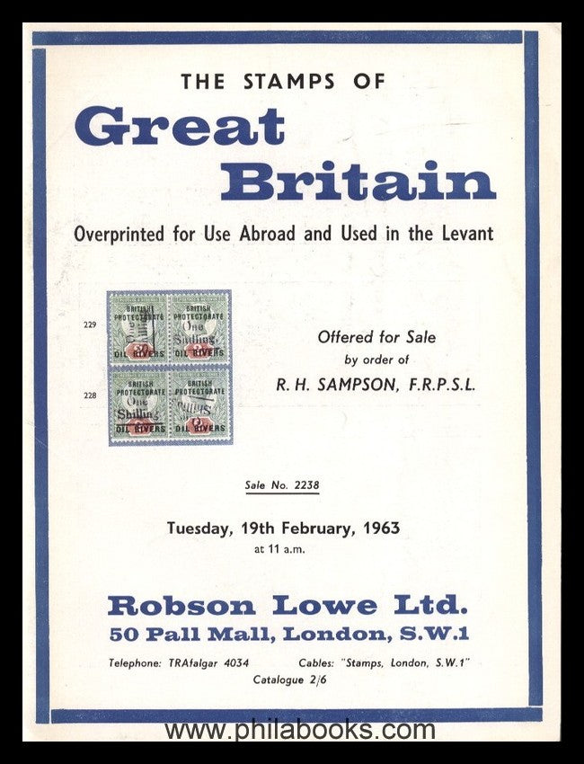 Sampson Collection, The Stamps of Great Britain Overprinted for Use Abroad and Used in the Levant, Robson Lowe, 19.02.1963, 237 L., mit Abb., EL, #45543