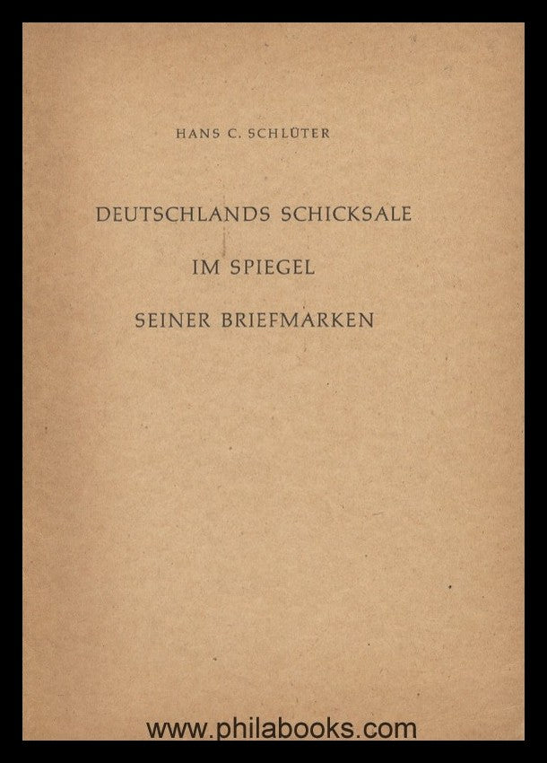 Schlüter, H.C., Deutschlands Schicksale im Spiegel seiner Briefmarken, o.J.,(1949), nachdenkliche Bestandsaufnahme zum 100. Geburtstag der deutschen Briefmarke 1949, mit einer Übersicht der zahlreichen dt. (Neben)-Gebiete mit knapp 8000 Briefmarken. #45915