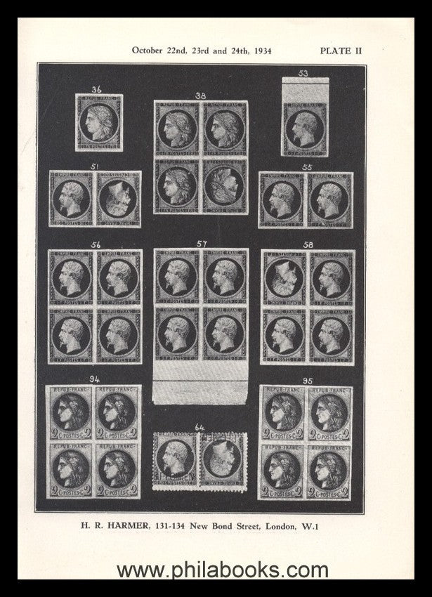 Hind Collection, H.R. Harmer, London, Sale 6,, 22.10.-24.10.1934, France and Colonies, 706 Lose, 11 Fototafeln sowie Abb. im Text, gute Erhaltung #46365