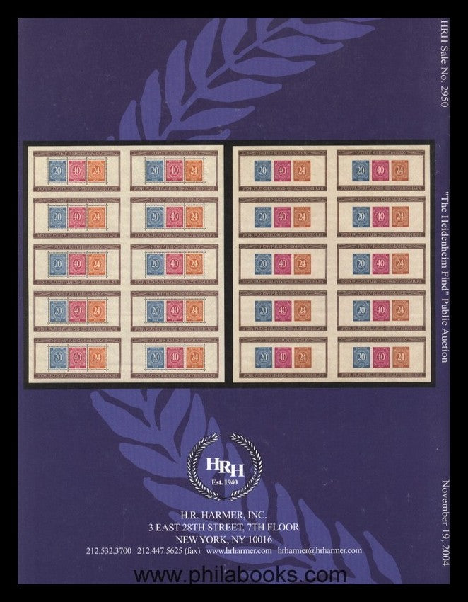 Harmers, New York City, Sale 2950, Public Auction, The Heidenheim Find, 19.11.2004, Deutschland in Bögen, meist Nachkriegsdeutschland u.a. mit Posthornsatz #47880
