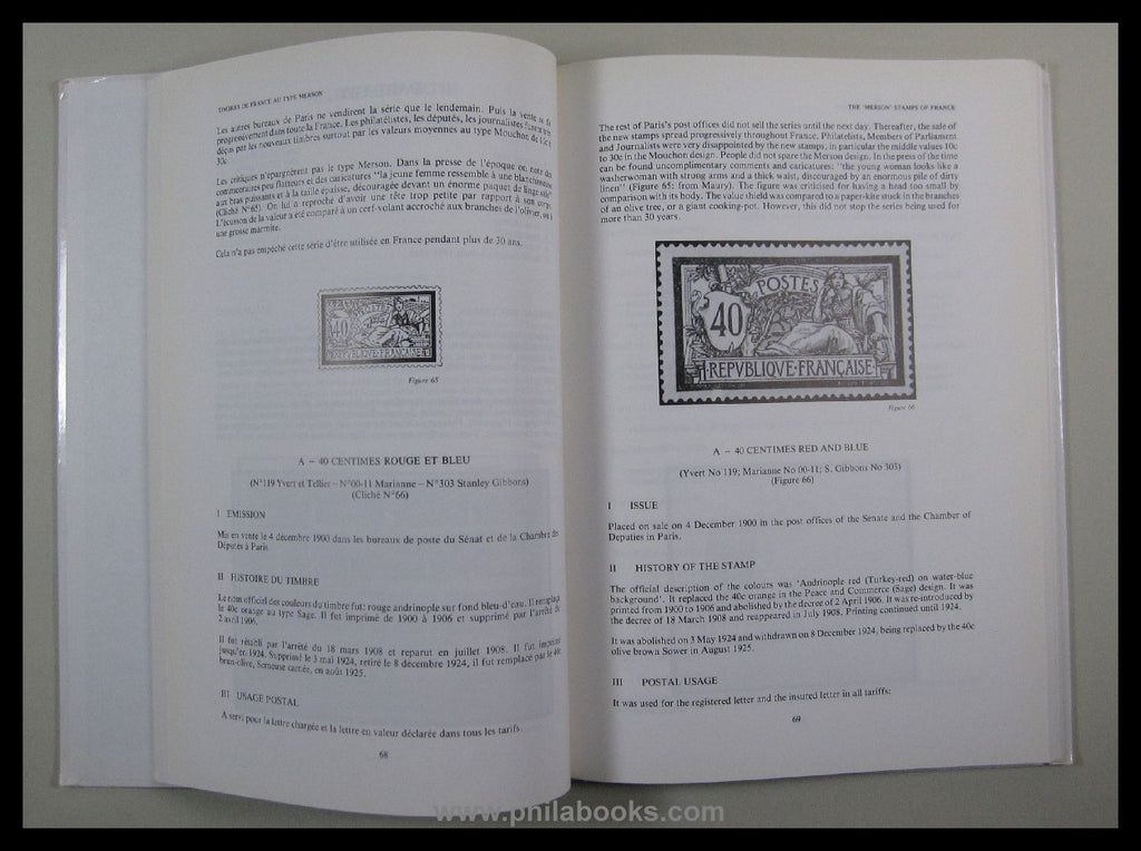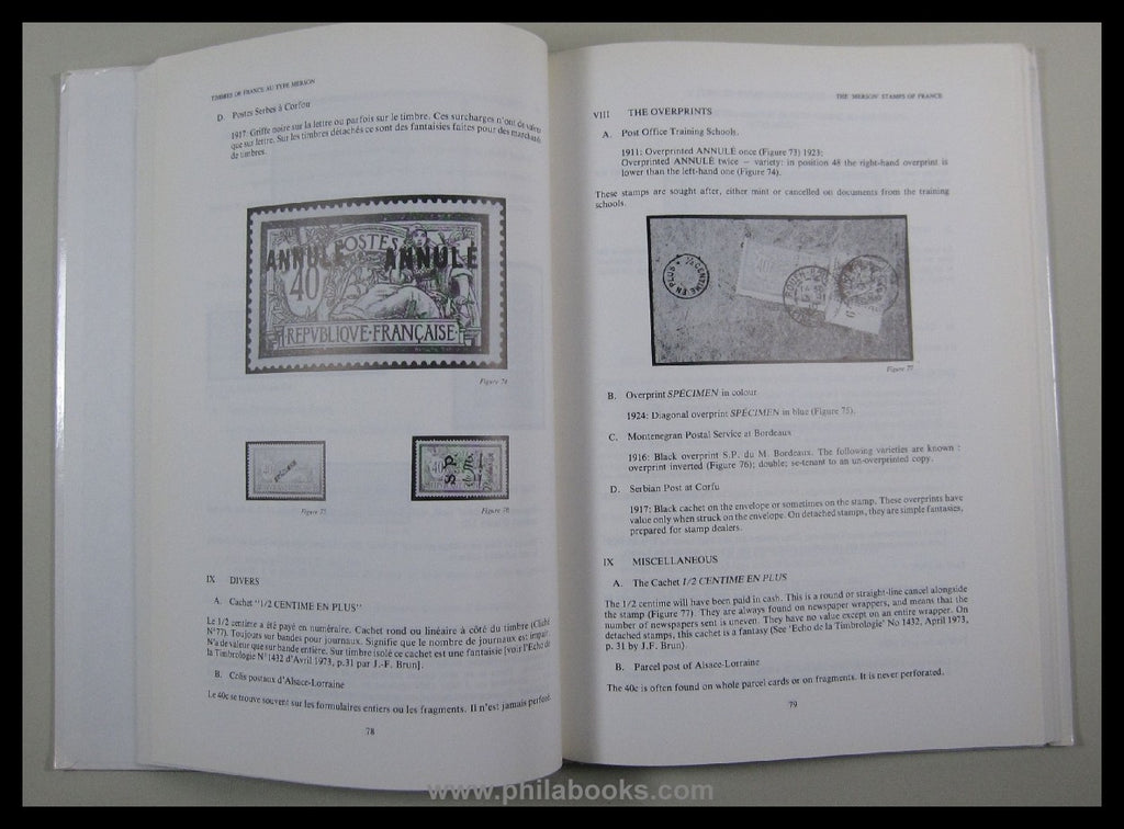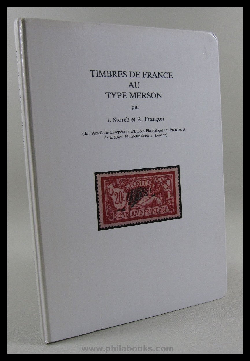 Storch, Jean/ Francon, Robert: Timbres de France au Type Merson, Royal Philatelic Society, London 1990, Spezialkatalog der Merson-Serie von Frankreich, alles über die Briefmarken, auch Stempel, Belege, Postalisches, Fälschungen, 198 S., Abb., hartgebunden. Gutes Exemplar mit Widmung für C. Muys #49021